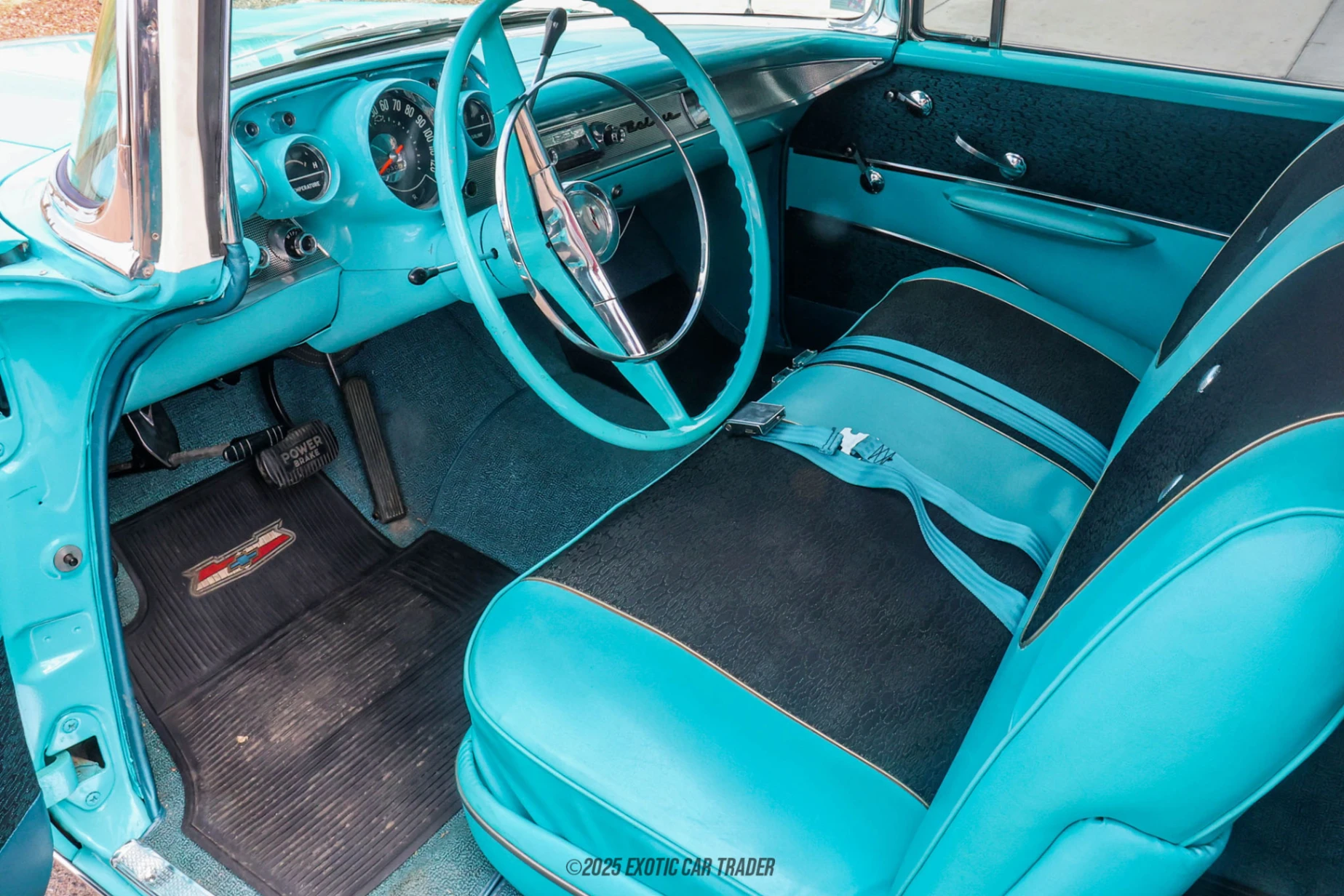 The 1957 Chevrolet 210 2-Door Sedan is a timeless classic design that truly embraced the styling cues prevalent at the time. It features long flowing lines, with large fins at the rear, and lots of little design details. But what you may not realize about our featured 1957 Chevrolet 210 2-Door Sedan is that it packs a lot more under the hood than it did when it rolled off the factory floor some 68 years ago. That’s because this Chevy has an all-new drivetrain, with a rate Blueprint 350ci V8 under the hood, mated to a brand new four-speed transmission. So, if you’re looking for the perfect blend of classic looks and modern performance, this classic restored treasure may be right up your alley.