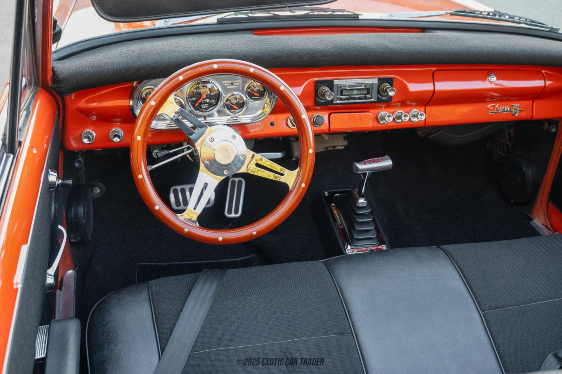 This 1963 Chevrolet II Nova Convertible stands as an expertly executed blend of vintage style and modern performance. Originally designed as Chevrolet’s compact answer to the Ford Falcon, this Nova has evolved into a show-ready restomod built for both cruising and performance. With a 350ci small-block V8 under the hood, upgraded internals, and a Hugger Orange finish, it delivers a perfect mix of power and nostalgia. The convertible body adds rarity and open-air enjoyment, while subtle performance touches—like the B&M ratchet shifter and Edelbrock induction—hint at the muscle lurking beneath its clean lines.