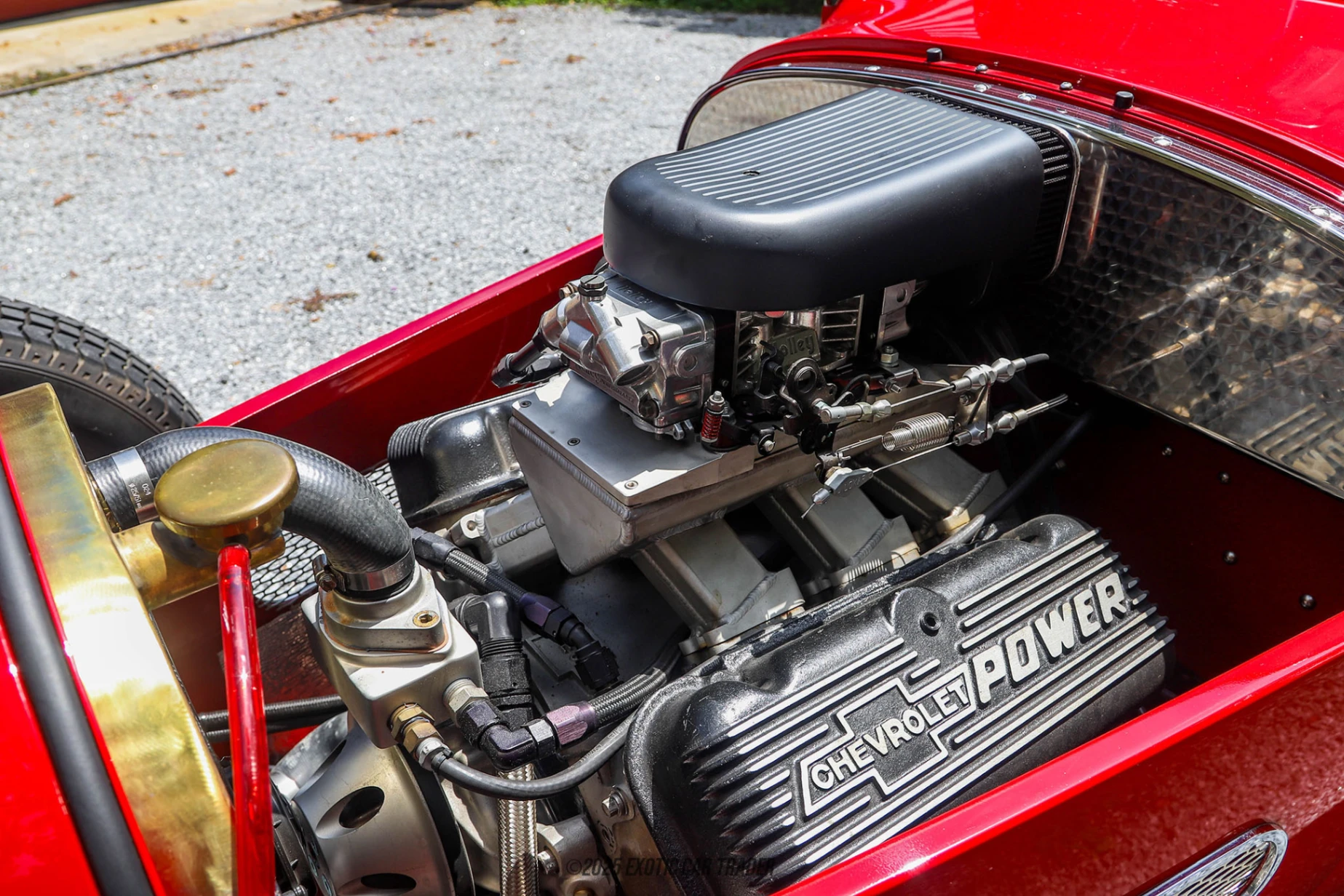 Contrary to the popular mental image of hotrods, the visual modifications on this car are quite subtle, while being distinctive. The steel body has been painted red, and the chosen shade helps the car stand out without being too loud. The overall design has paid homage to the time period, with the wheels being large, but a very period-correct classic design. Even the chrome front end almost resembles a vintage Morgan. It has side exhausts, fitted flush into the bodywork with chrome surrounds, rather than sticking out from underneath. Rather than having a big supercharger standing in front of the windshield (as is popular with hotrods, especially of this vintage), the designers of this build have chosen to have everything sit within the limits of the engine bay. In fact, the seller states that the hood is also available. Additionally, the metal trim has been overhauled. Inside, the theme continues with the grey interior. The leather bench seats have been replaced, and they now have seatbelts as well. The gauge cluster is an aftermarket one and is set in a silver base, which highlights the black gauges.