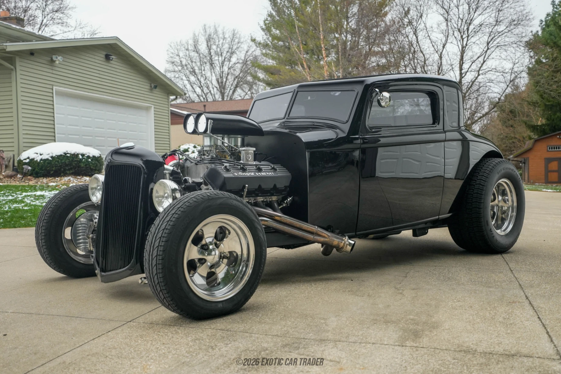 Power comes from a Mopar 472ci Hemi crate V8, a naturally aspirated big-block built for serious performance and visual impact. Equipped with dual Edelbrock 4-barrel carburetors, aluminum cylinder heads, and an aluminum water pump, the setup delivers strong airflow and reliable cooling while maintaining classic hot rod character. The engine is paired with a TH400 3-speed automatic transmission, sending power to the rear wheels through a robust drivetrain, while a stainless steel exhaust system with cutouts enhances both performance and sound.