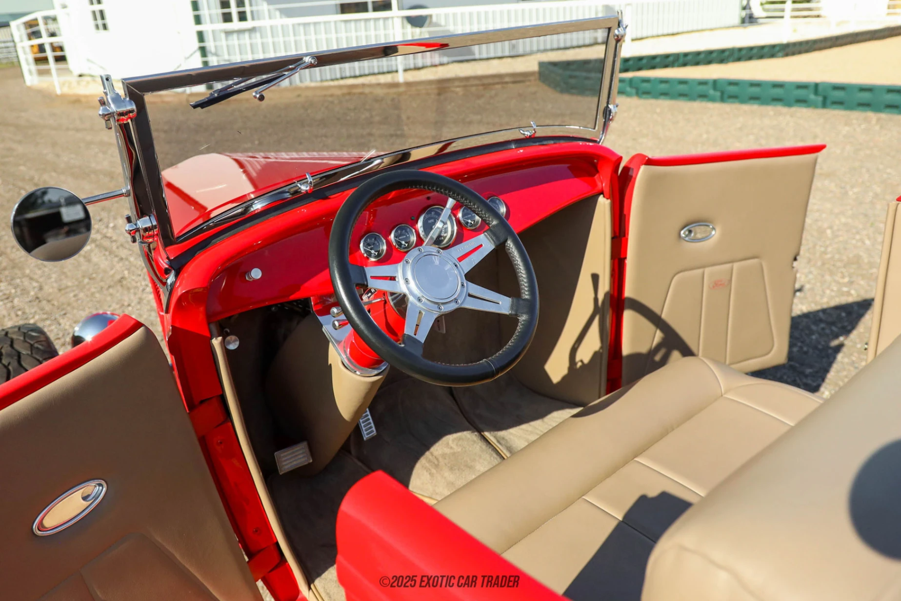 The exterior is what makes or breaks a proper hot rod. One look at this 1932 Ford Hot Rod with its spicy red exterior, and it's pretty clear that it has made it. The custom exterior features all the right upgrades without taking away from this machine's past. For shoes, what you find in place is a set of aftermarket wheels giving just the right amount of stance. Step into the tan interior cabin of this 1932 Ford Hot Rod, and it's all about maximising your comfort as you work through the newfound performance this hot rod has to offer. Step inside and you would find form embossed leather bench seats, billet style steering wheel and dashboard components, and even custom door cards.