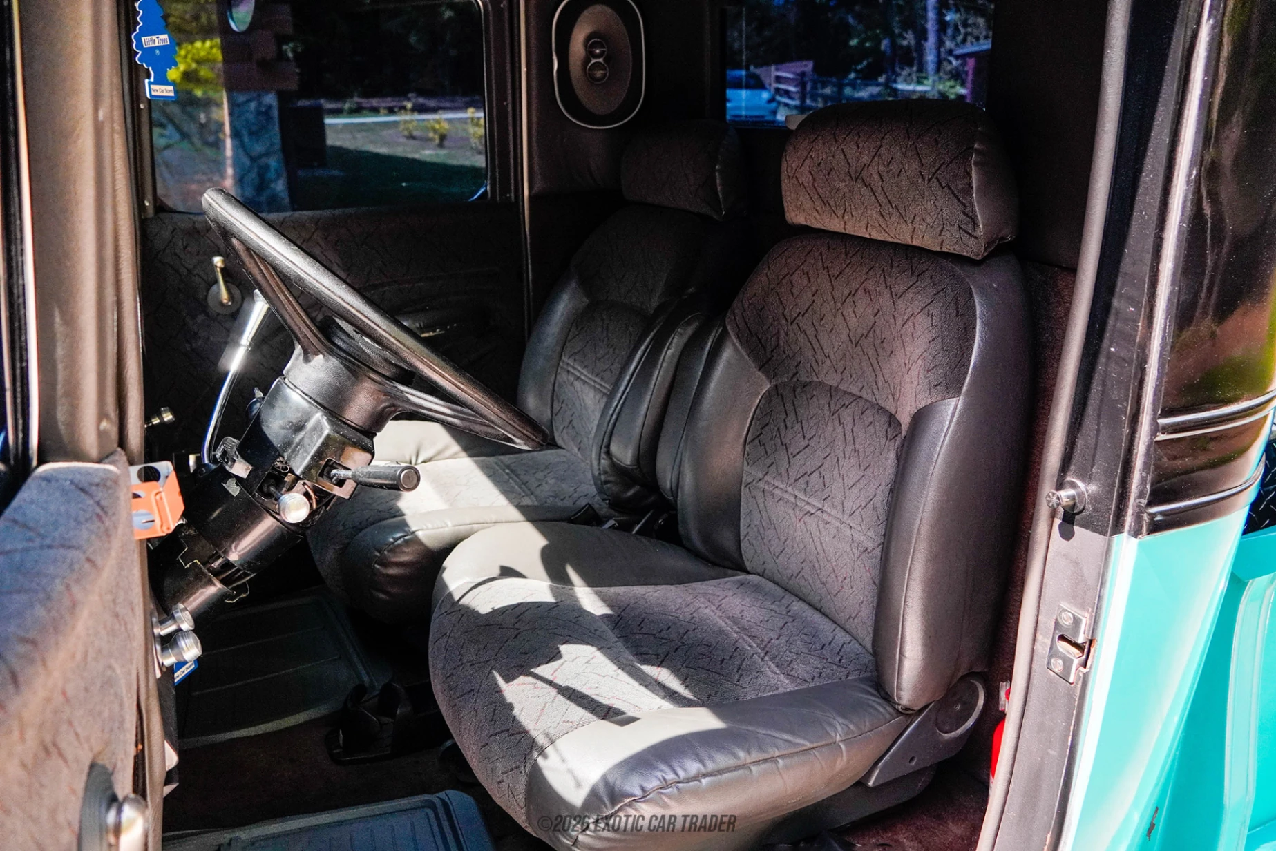 The exterior of this 1936 Chevrolet FB 1/2-Ton Pickup Street Rod is finished in a striking turquoise and black two-tone paint scheme, giving the truck a vibrant yet timeless presence. The rounded fenders, upright grille, and classic proportions remain true to its 1930s heritage, while modern touches like aftermarket wheels and a lowered stance enhance its street rod appeal. The bed features a wood floor complemented by diamond plate covering and a lockable toolbox, blending functionality with a rugged custom aesthetic. Overall, the exterior strikes a perfect balance between restoration and customization. The interior of this 1936 Chevrolet FB 1/2-Ton Pickup Street Rod is finished in brown and has been fully reupholstered to provide a clean and comfortable cabin. Modern conveniences such as an aftermarket gauge cluster, tilt steering column, and upgraded steering wheel improve drivability, while the addition of air conditioning makes it far more usable in today’s conditions. An aftermarket audio system adds entertainment, and seat belts provide an extra layer of safety. The cabin retains a classic feel while incorporating subtle upgrades that enhance comfort and usability.