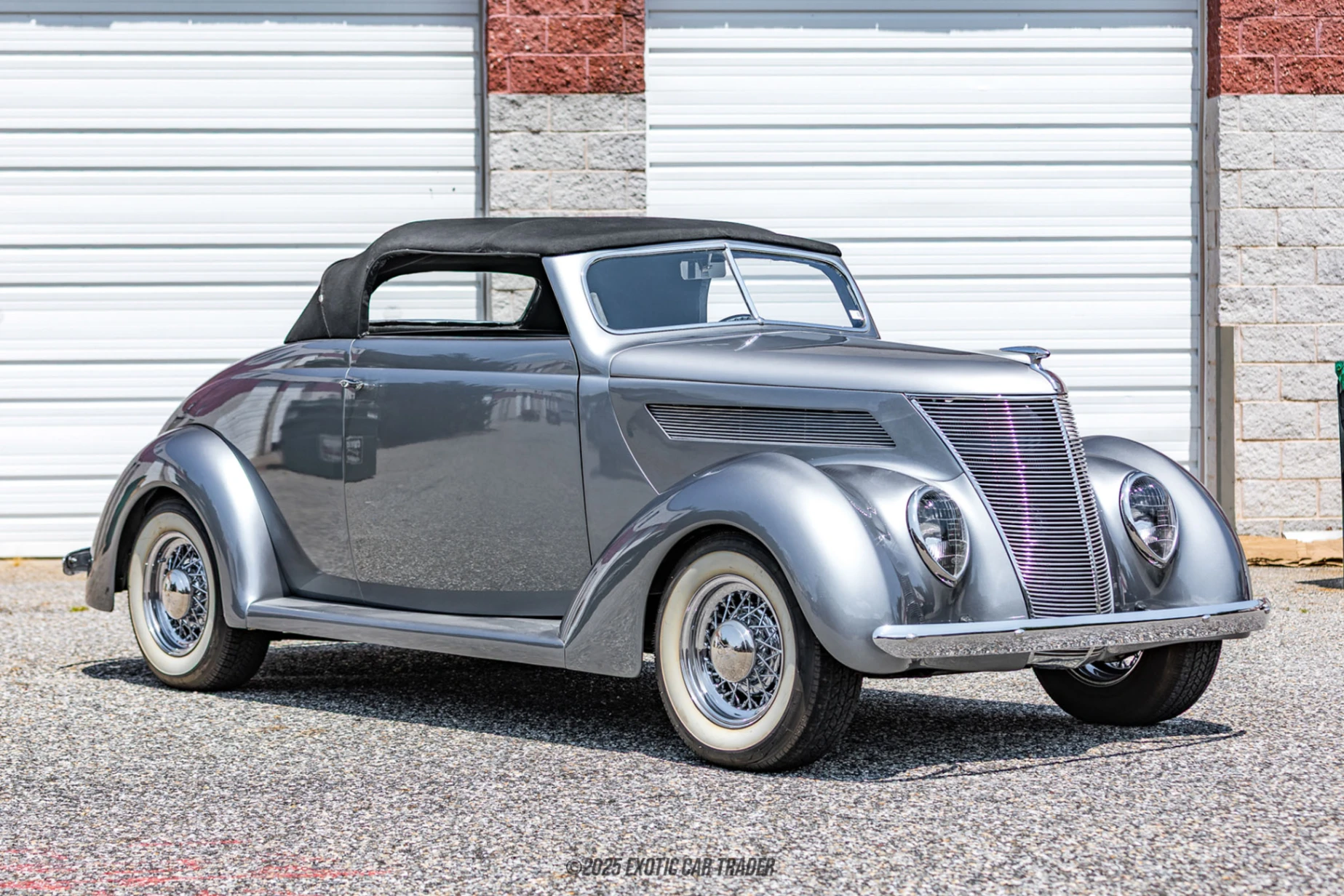 Finished in a timeless shade of silver, the sleek Downs Industries fiberglass body captures the flowing curves and intricate detailing that made the original '37 Ford a beloved icon. Its beautifully contoured shape is accentuated by period-correct brightwork, while the dual exhaust system adds a hint of performance flair to its sophisticated presence. The result is a head-turning hot rod that honors its heritage while embracing a tasteful custom aesthetic. Inside, the black interior maintains the refined yet purposeful feel. Attention to detail is evident throughout, showcasing quality craftsmanship and a thoughtfully designed cabin. With comfort-focused enhancements like power steering and power brakes, this hot rod provides modern usability, letting you enjoy classic motoring without the compromises of the past.