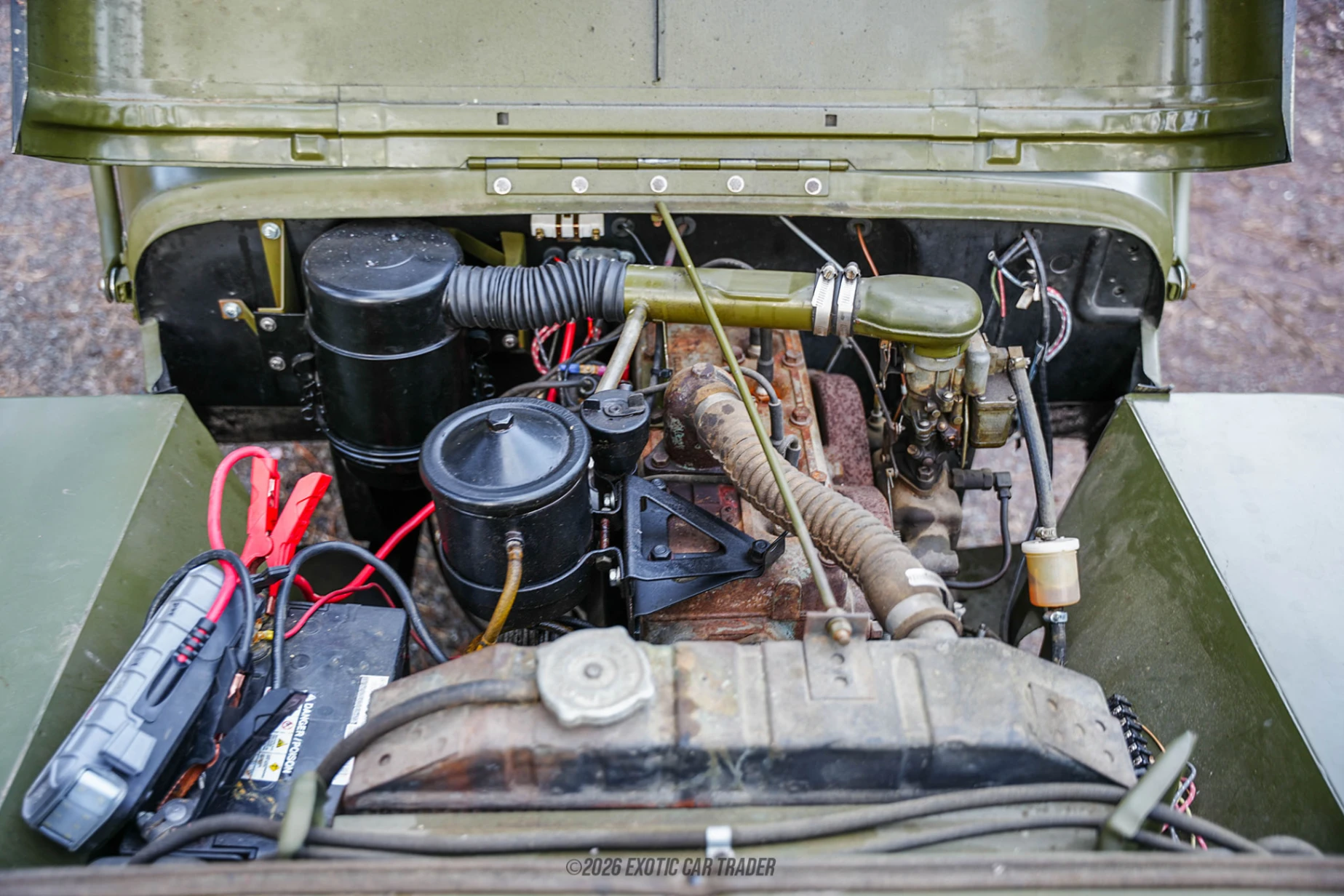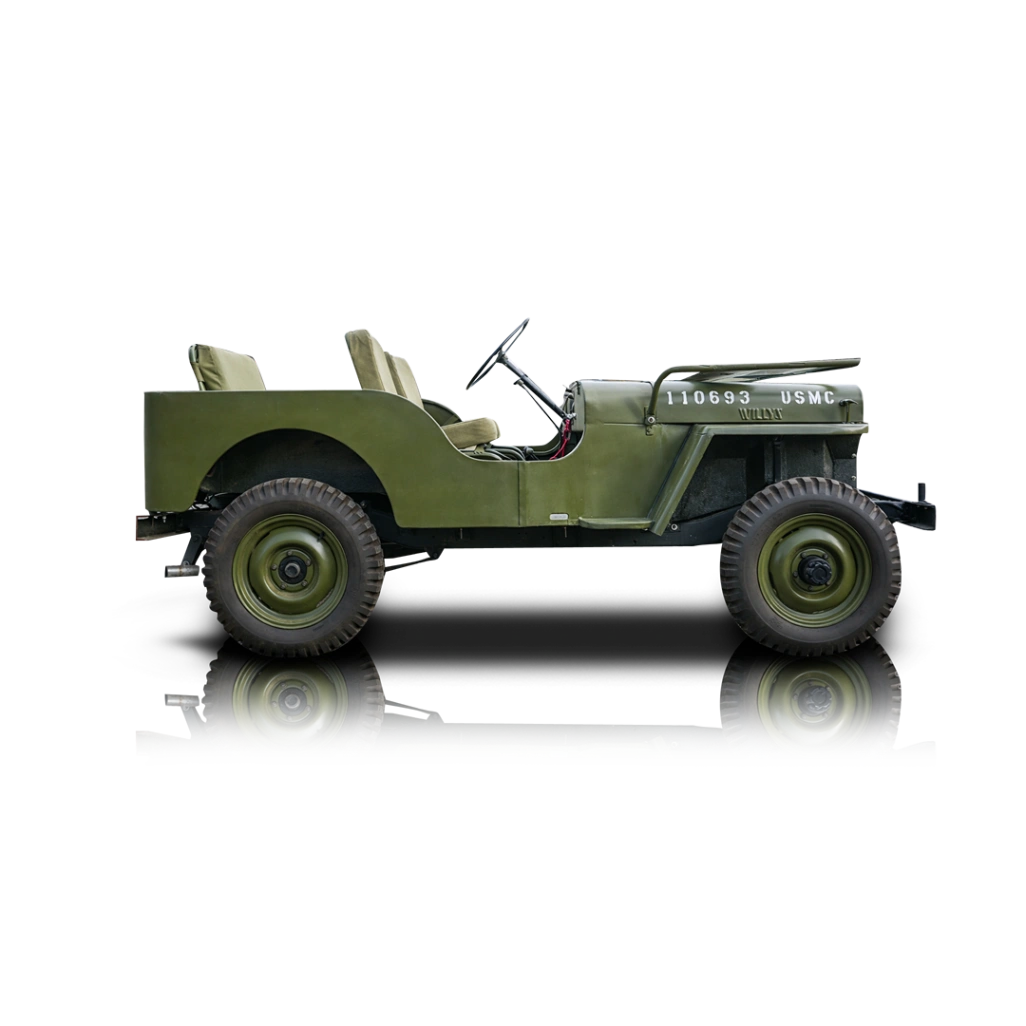 Power comes from a 134ci L-head “Go-Devil” inline-4 (NA), fed by a 1-barrel carburetor and paired to a Borg-Warner T-90 3-speed manual transmission. A Dana 18 dual-range transfer case delivers true part-time 4x4 capability. Simple, mechanical, and easy to service, the CJ-2A platform is known for durability and strong low-end torque, remaining faithful to its original utilitarian engineering.