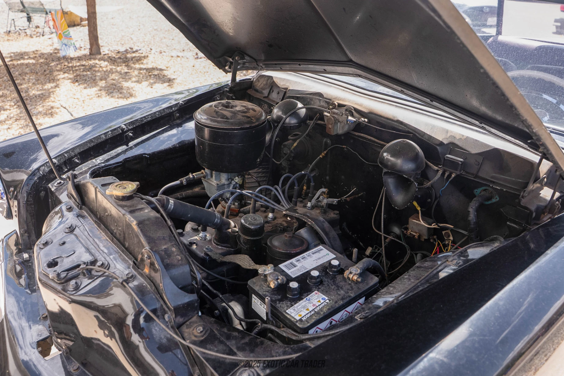 The 170ci L-head inline 6-cylinder engine has been rebuilt. It’s fed through a single carburetor and drives the rear wheels via a 3-speed manual transmission (with overdrive). The master cylinder for the drum brakes is aftermarket but it does retain the 6-volt battery system.