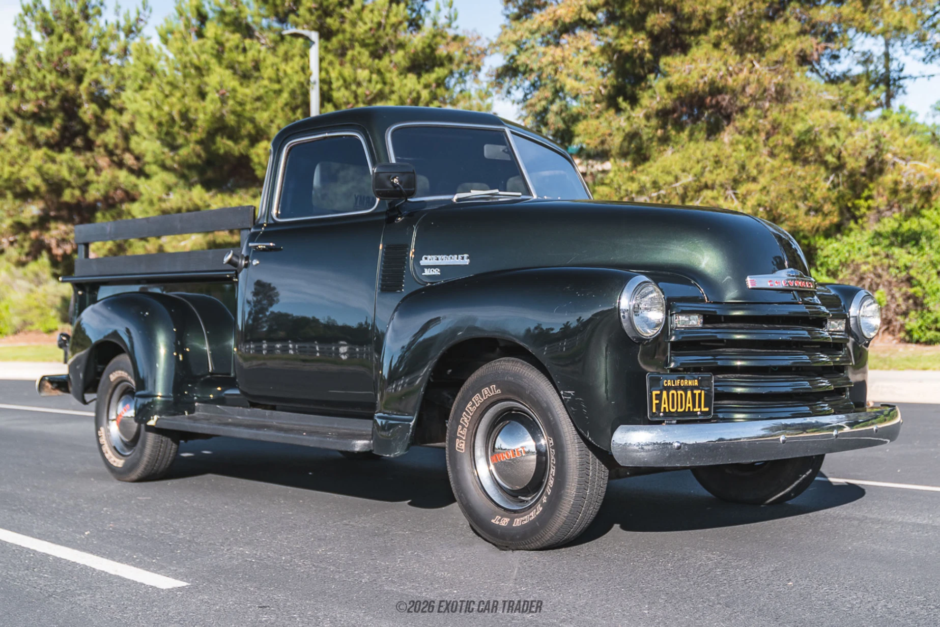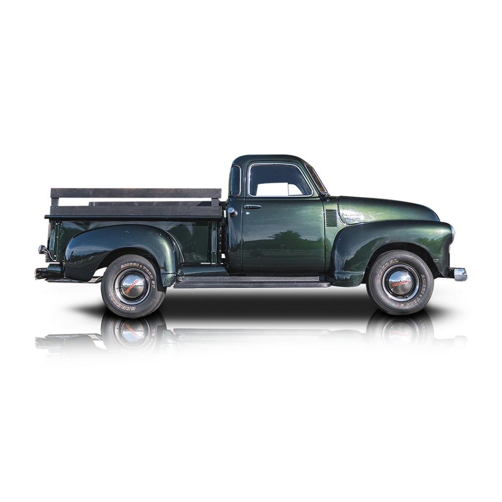 The exterior of this 1950 Chevrolet 3100 is finished in a rich Forest Green, a color that beautifully complements the truck’s rounded fenders, prominent front grille, and iconic vintage body lines. Its classic silhouette remains one of the most celebrated truck designs of the era, and this example’s finish gives it a clean, refined presence that stands out without straying from its heritage. The wood bed trim adds an extra touch of craftsmanship and period-correct character, reinforcing its classic Americana appeal. The interior of this 1950 Chevrolet 3100 has been reupholstered in black, giving the cabin a fresh and well-presented look while preserving the truck’s vintage charm. The renewed upholstery brings a cleaner, more comfortable feel to the bench-seat layout, making it far more inviting for weekend drives and car events. The contrast between the deep black cabin and Forest Green exterior creates a timeless color combination that suits the truck exceptionally well.