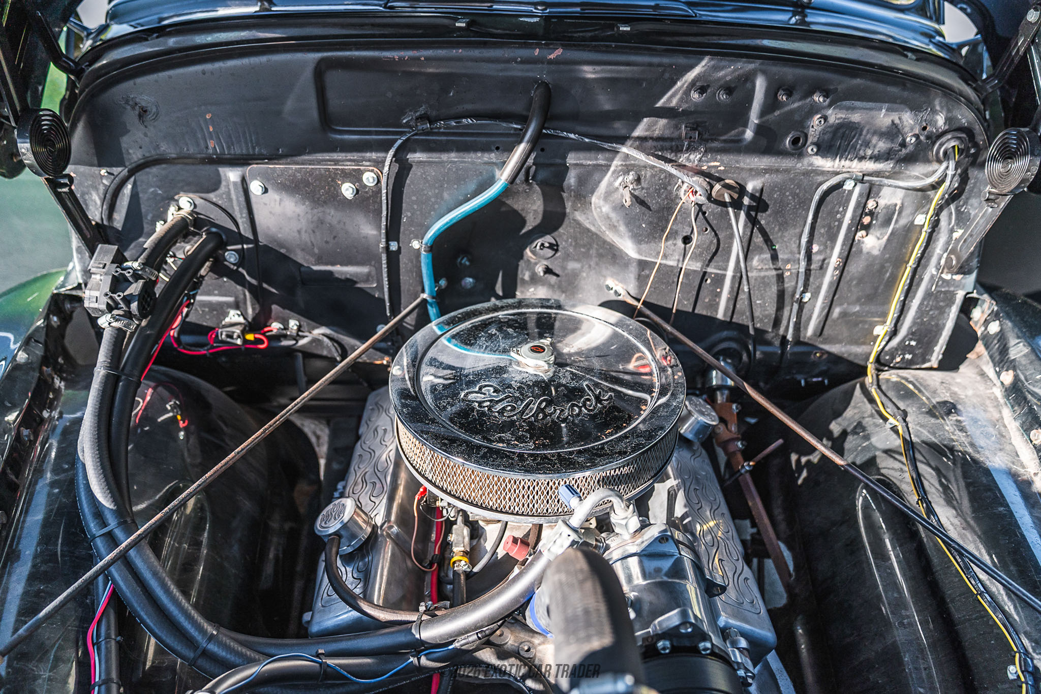 This 1954 Chevrolet 3100 pickup has been thoughtfully transformed into a classic hot rod while maintaining the timeless styling of Chevrolet’s Advance Design-era trucks. Known for their rugged durability and clean, rounded body lines, the 3100 series became one of the most recognizable American pickup designs of the 1950s. This example blends vintage character with extensive performance upgrades, including a powerful V8 engine and modern suspension components. Finished in a vibrant blue and featuring a stained wooden bed floor, this custom pickup captures the spirit of traditional hot rodding while offering improved drivability and performance. The truck has also received recognition in the show scene, earning “Best of the ’50s” at the 2025 Rotary Club of Kern River Valley Car Show.