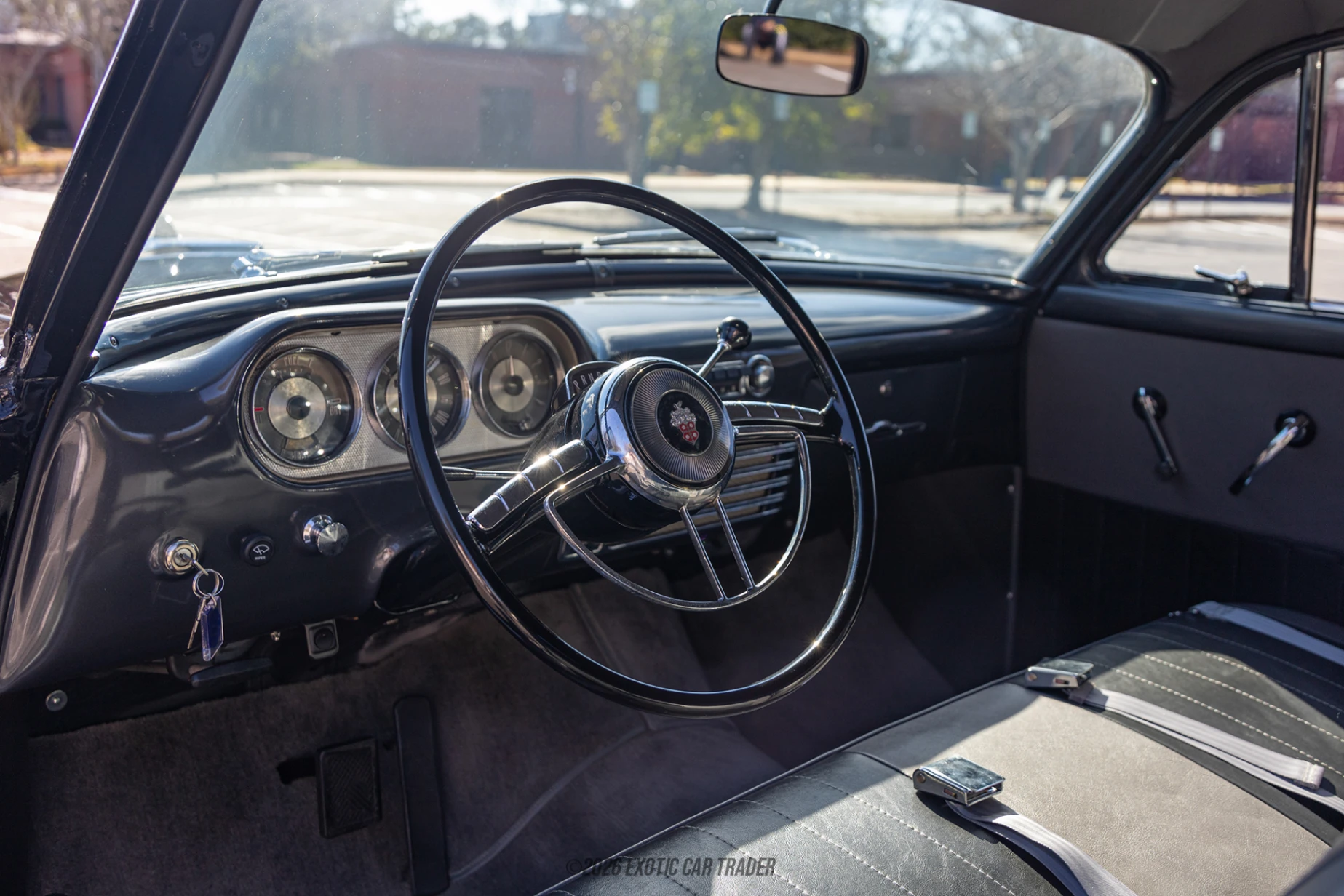 This 1951 Packard 200 wears a period-correct black paint job and complements it with chromed wheels, whitewall tires and chrome bumpers. The car seems to be in great shape, right down to the correct badging, the bumper-mounted lights and overall clean appearance. This is a classic that’s been cared for well, and given the requisite maintenance when needed. The interior of this 1951 Packard 200 comes with gray bench seats and looks as period-correct as the exterior. As you grip the thin-rimmed steering wheel, take in the lovely dashboard and gaze at the view outside via the semi curved front windshield, you’ll be taken back in time, to an era where digital distractions, touchscreens and loads of electronics weren’t even a thing. This Packard contains what you need for a pleasant drive, with your sole musical entertainment source being a push-button radio – unless you wish to do the singing by yourself.