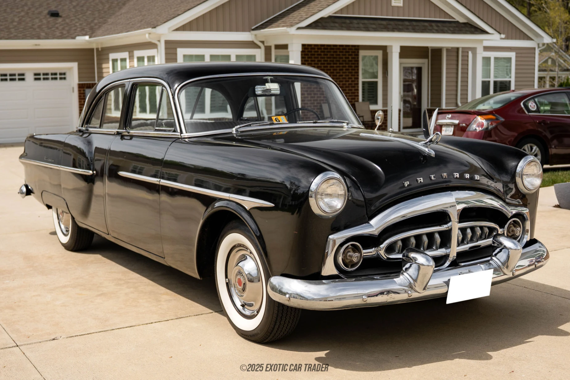 This stylish 1951 Packard 300 showcases its classic ’50s beauty in a sleek coat of straight black paint. Black was a popular '50s color, before pastel shades and rainbow hues emerged later in the decade. The car rides on four whitewall tires that are radial units rather than cross-plies, so you’ve got more grip and better handling capabilities than the car did when brand new. A canvas-fitted car cover is also included with the sale. The wool interior of this 1951 Packard 300 features front and rear bench seats, an Art Deco-styled dashboard, and few creature comforts as were common during the time. We’re told that there’s a power radio antenna, but the car’s AM/FM radio and electric clock are not functional at the moment. That’s alright, as a competent electronics whiz easily fixes these. However, the car does have a heater so you can take some winter drives if the mood strikes.