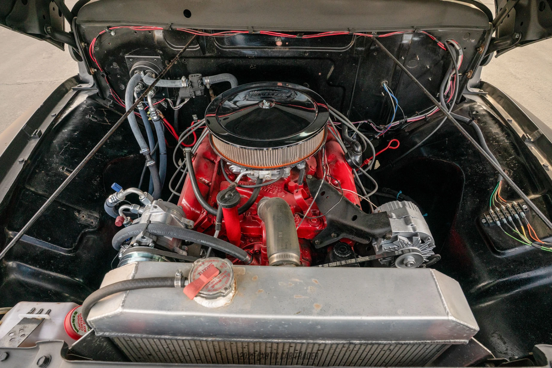 Power is supplied by a 350ci naturally aspirated V8 fed by a 4-barrel carburetor, delivering traditional V8 sound and responsive throttle feel. The engine is paired with a TH350 3-speed automatic transmission, providing smooth operation and easy drivability. Supporting upgrades include an aftermarket aluminum radiator, aftermarket air cleaner, and a dual exhaust system with turn-out pipes for improved cooling and a more aggressive exhaust note. Additional enhancements such as power steering, Vintage Air conditioning, a modern wiring harness, and a 12-volt electrical conversion make this F-100 far more usable in modern driving conditions while retaining its classic mechanical character.