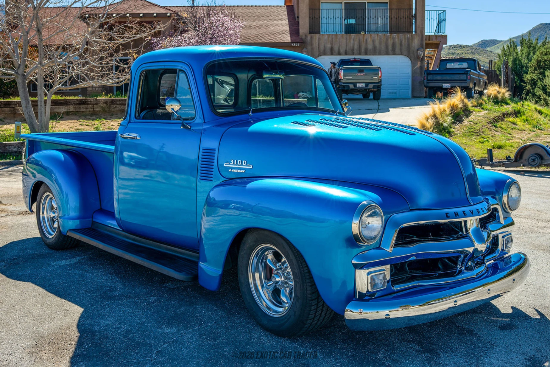 This 1954 Chevrolet 3100 pickup has been thoughtfully transformed into a classic hot rod while maintaining the timeless styling of Chevrolet’s Advance Design-era trucks. Known for their rugged durability and clean, rounded body lines, the 3100 series became one of the most recognizable American pickup designs of the 1950s. This example blends vintage character with extensive performance upgrades, including a powerful V8 engine and modern suspension components. Finished in a vibrant blue and featuring a stained wooden bed floor, this custom pickup captures the spirit of traditional hot rodding while offering improved drivability and performance. The truck has also received recognition in the show scene, earning “Best of the ’50s” at the 2025 Rotary Club of Kern River Valley Car Show.