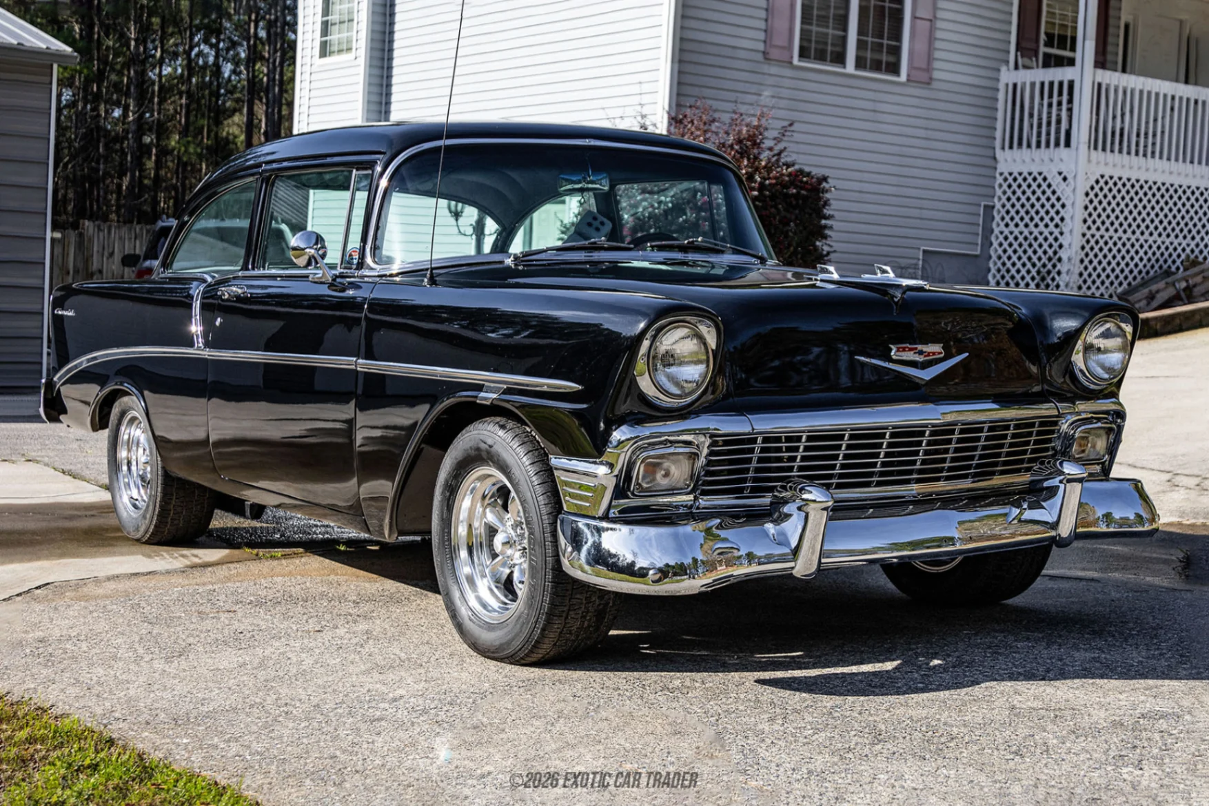 You probably didn’t think about the Chevy 210 when perusing through classic Fifties cars to acquire. So let us show you one, this 1956 Chevrolet 210 from Dallas. The Chevy 210 was offered between 1953 and 1957, as a sturdy and dependable midsize family car. Two generations were made during this time; this car is a second-generation example. It’s in great shape, with a reportedly very straight body and is said to have won in World of Wheels. If you want to take on this nice black beauty with its gray interior and air conditioning, plus some other neat upgrades, contact us ASAP.