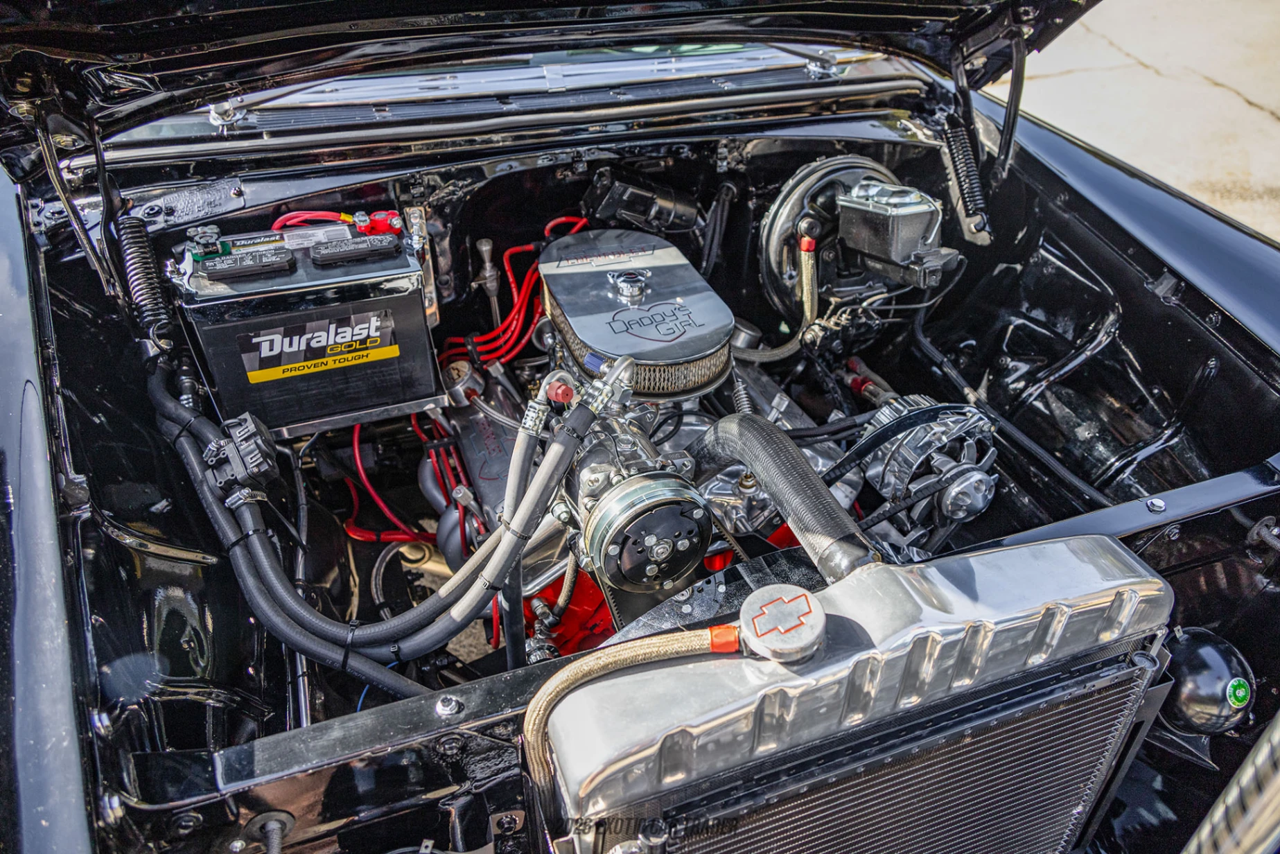 The 1956 Chevrolet 210 occupies a special place in hot rod and drag racing history, and this example takes that legacy to an extreme with a purpose-built gasser-inspired custom build. Drawing direct influence from mid-century drag strip warriors, this 210 blends classic Tri-Five Chevrolet styling with unapologetic performance hardware and show-stopping presence. Finished in a bold Candy Apple Red and enhanced with Bel Air badging, the car delivers vintage race car attitude while benefiting from modern upgrades designed to handle serious power. From its supercharged big-block to its race-ready suspension and braking, this gasser-style 210 is built to stand out both visually and mechanically.