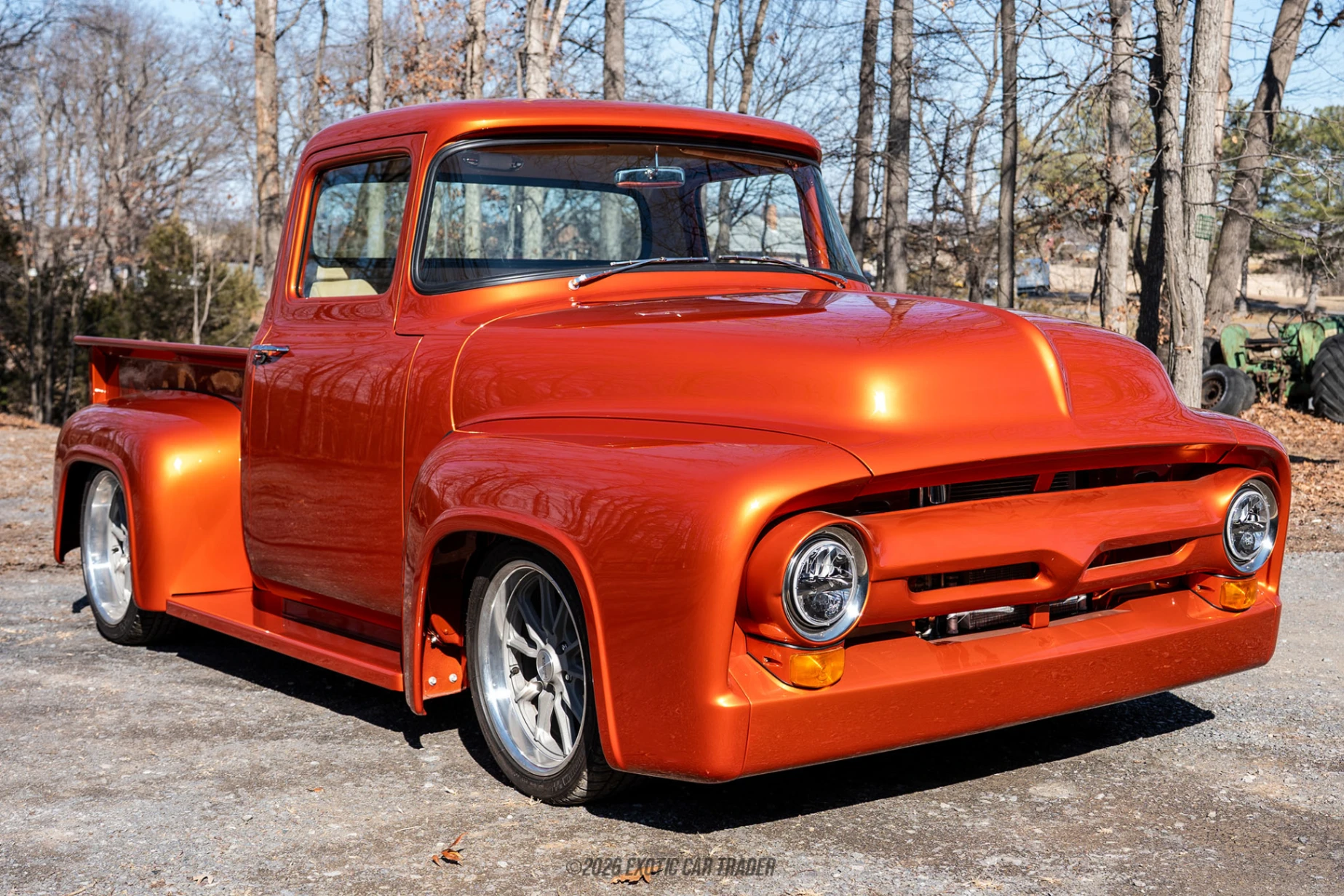 Introducing the iconic 1956 Ford F-100 Restomod, a perfect blend of vintage charm and modern performance. This classic pickup is a tribute to Ford’s legacy, featuring a striking Burnt Orange exterior that is both eye-catching and distinctive. With only 21 miles shown on the odometer, this vehicle makes a bold statement on the road. Enhanced with an array of custom features and engineered for driving confidence, this F-100 is a remarkable find for any classic car enthusiast or collector. The vehicle retains its renowned character while embracing contemporary upgrades, ensuring a unique driving experience. This Ford is poised to turn heads and deliver pleasure behind the wheel, combining nostalgia with innovation in one stunning package.