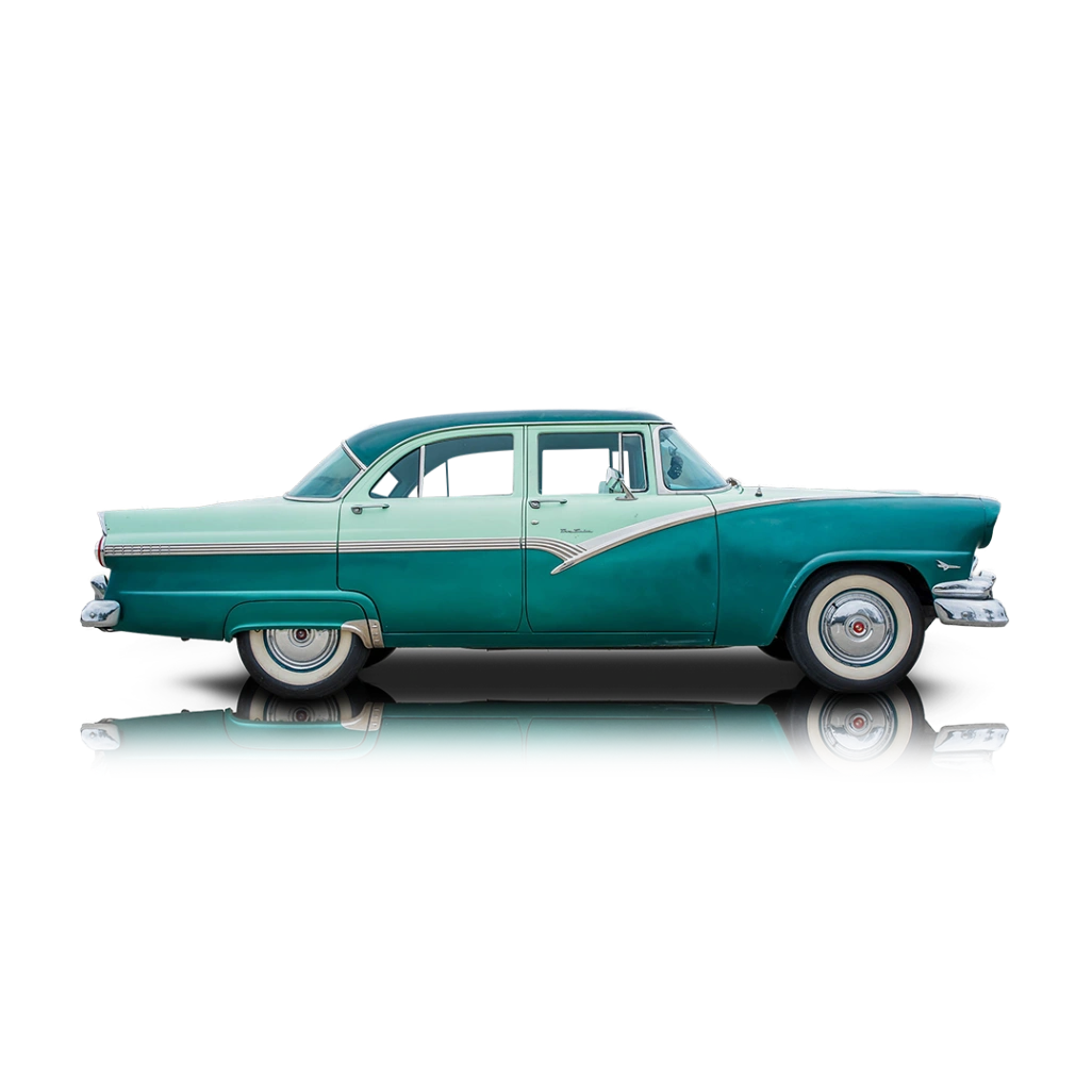 Power is provided by a 292ci Ford Y-block V8, naturally aspirated and fed by a single four-barrel carburetor. This engine is paired with a column-shifted Ford-O-Matic two-speed automatic transmission, delivering smooth and relaxed driving characteristics typical of the era. The rear-wheel-drive layout is supported by independent front suspension and a rear live axle, while four-wheel drum brakes and manual steering preserve the car’s original driving feel. Together, the mechanical components offer a period-correct balance of V8 performance and cruising comfort.