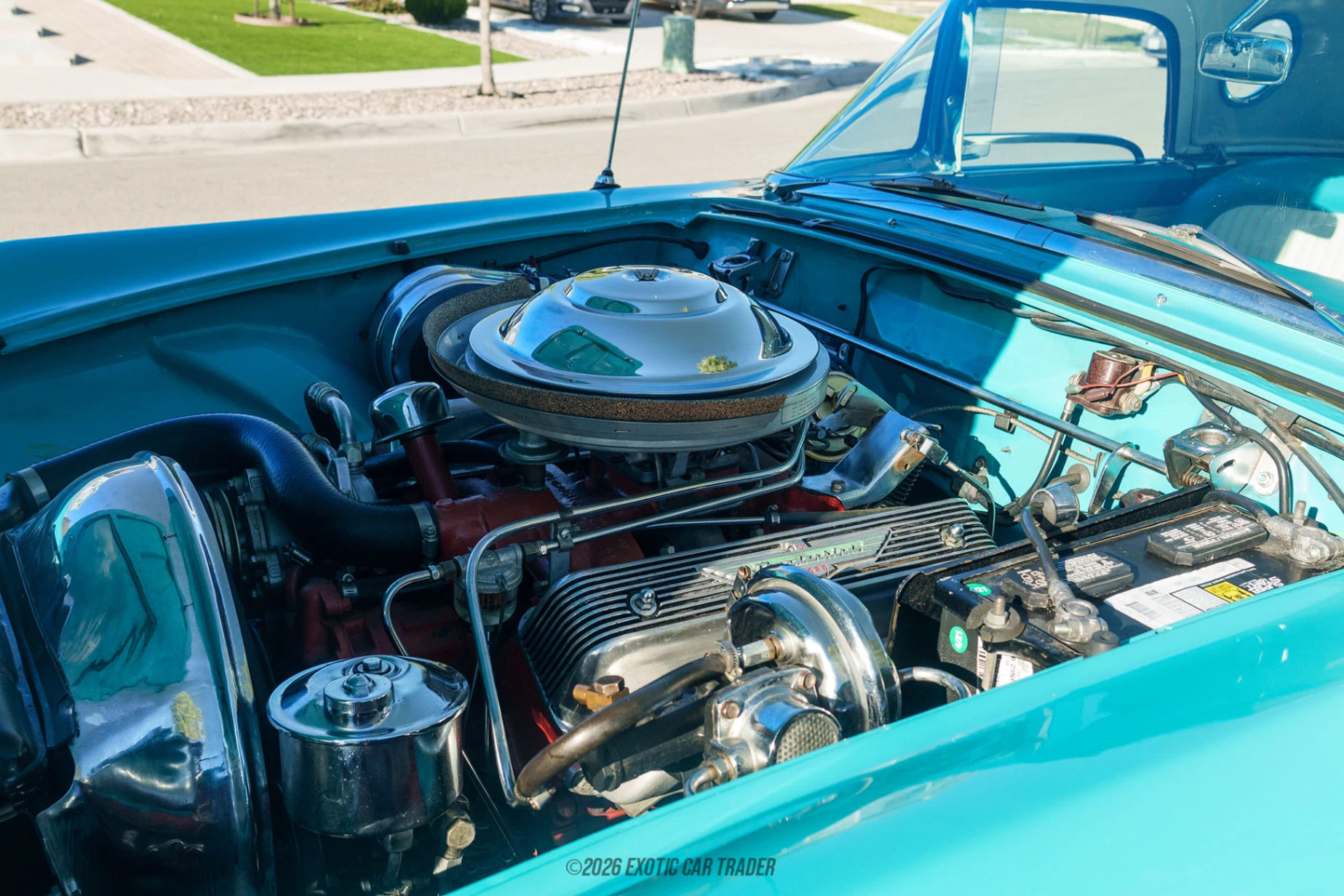 Powering this 1956 Ford Thunderbird is a 312 cubic inch Y-block V8, one of Ford’s most respected engines of the era. Equipped with a four-barrel carburetor, the engine delivers strong torque and smooth power delivery that suits both relaxed cruising and spirited driving. This example also features the desirable Chrome Engine Dress-Up Kit, which includes chrome valve covers and air cleaner components that enhance the engine bay’s classic presentation. Power is sent to the rear wheels through a 3-speed automatic transmission, providing effortless drivability and reinforcing the Thunderbird’s reputation as a stylish yet capable American grand touring car.