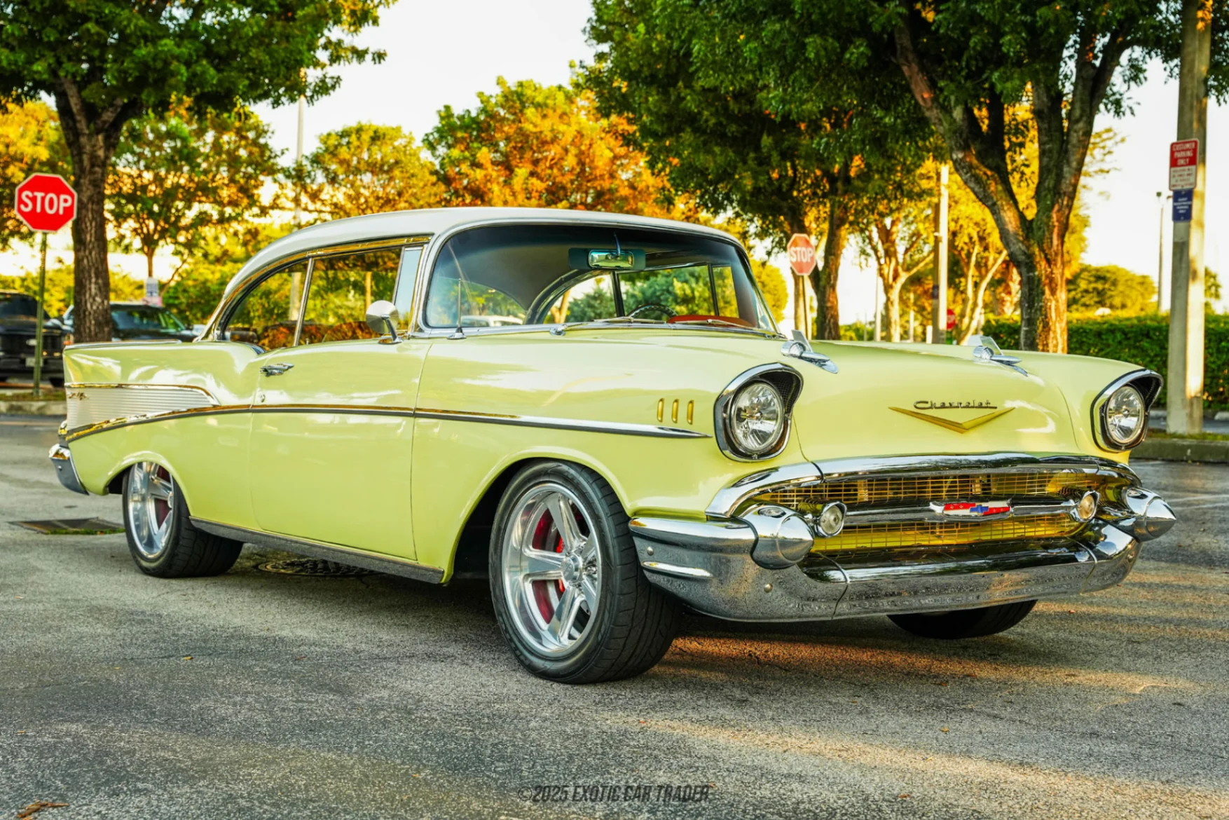 Chevy’s Bel Air is a well-known name in classic car circles and was named after the opulent Los Angeles neighborhood of the same name. Made between 1950 and 1981, the Bel Air was a full-size offering and came in many body styles, including sedans, coupes, convertibles, hardtops and station wagons. Chevy also offered a variety of powertrains, from thrifty Thriftmaster Sixes to massive Big-Block V8s. Today’s 1957 Chevrolet Bel Air Restomod is rather different, as it’s been extensively massaged and enhanced to bring it to the form that you see here. It’s up for sale in Miami having been endowed with a direct-injection supercharged LT4 V8, Wilwood brakes, a custom two-tone leather interior and so much more to enjoy. The build comes with just 5,807 miles on the clock too.
