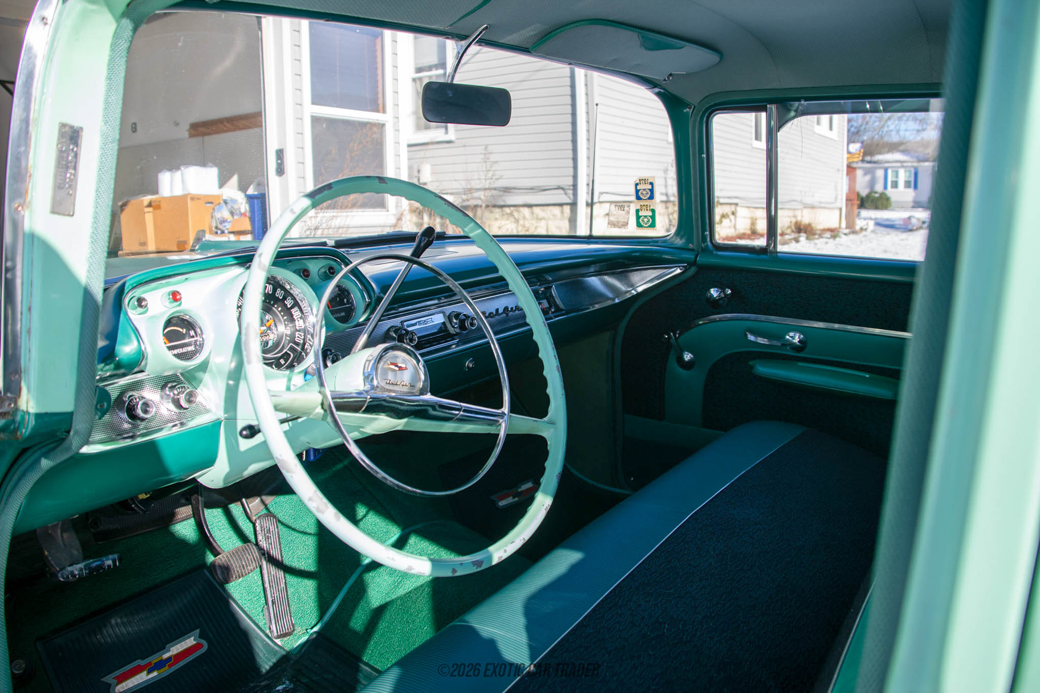 Dressed in turquoise and white two-tone, this 1957 Chevrolet Bel Air 4-Door Sedan is classic Fifties Americana right here. Two-tone themes where the roof came in white or a lighter color were common, as were whitewall tires and full wheel covers. This car has all those features, plus plenty of chrome, a symbol of automotive luxury back then. Tell us, can you name any car today with chrome bumpers, for example? You can’t. The interior of this 1957 Chevrolet Bel Air 4-Door Sedan continues the turquoise theme with front and rear bench seats offering comfortable accommodation for up to six adults. Meanwhile, the curved front windshield, thin pillars and ample glass all round make for a superbly airy experience. Plus, the car’s classic features have been preserved and retained, such as the thin-rimmed steering wheel, column shifter and art deco-inspired dashboard.