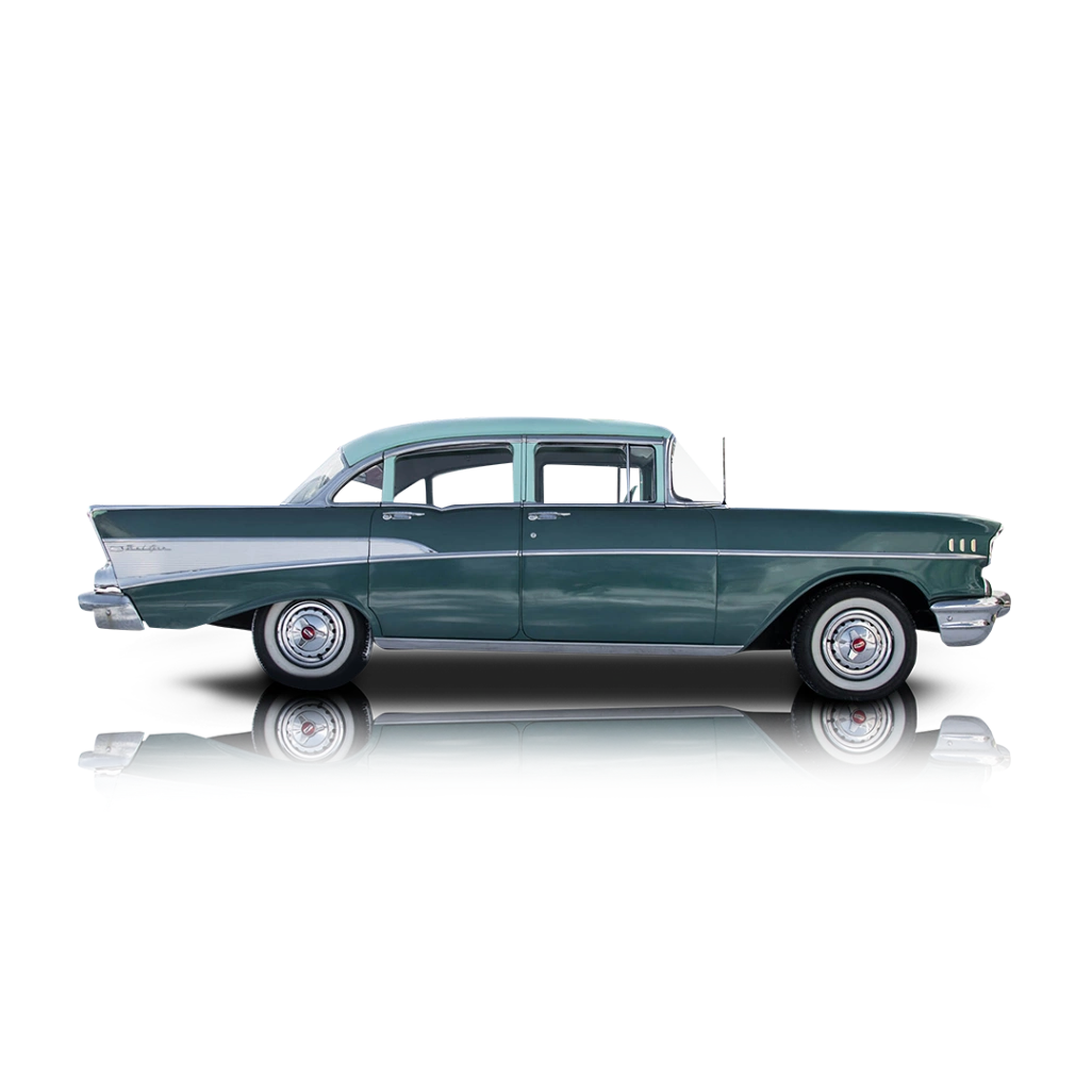 A classic American Chevy, like this 1957 Chevrolet Bel Air 4-Door Sedan is an ideal way to start your collection. Named after the affluent California neighborhood, the Bel Air came in 1950 and was made until 1975 for the United States. It continued to be offered in Canada for a further six years. All in all, eight generations of Bel Air were made, and this car is from the second generation. Based on the 1957 Chevrolet line-up, the second generation featured new styling and was ambitiously called “The Hot One” in GM’s promotional literature. This car is definitely a hot looker, with its Bel Air Exterior Trim Package, while a 283 and a 2-speed automatic box do the moving. Call us if you’d like to purchase it.