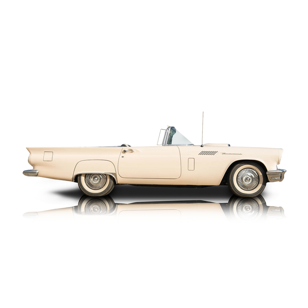 This 1957 Ford Thunderbird presents as a well-maintained example of the final year of the first-generation “Baby Bird,” showing 57,295 miles. Finished in Cream over a black and white interior, it retains the iconic single-headlight front fascia, sculpted rear fenders, and desirable body-colored hardtop with porthole windows. As one of America’s original personal luxury cars, the 1957 Thunderbird blends V8 performance with upscale styling and comfort-focused features, making it equally suited for show events or relaxed weekend cruising.