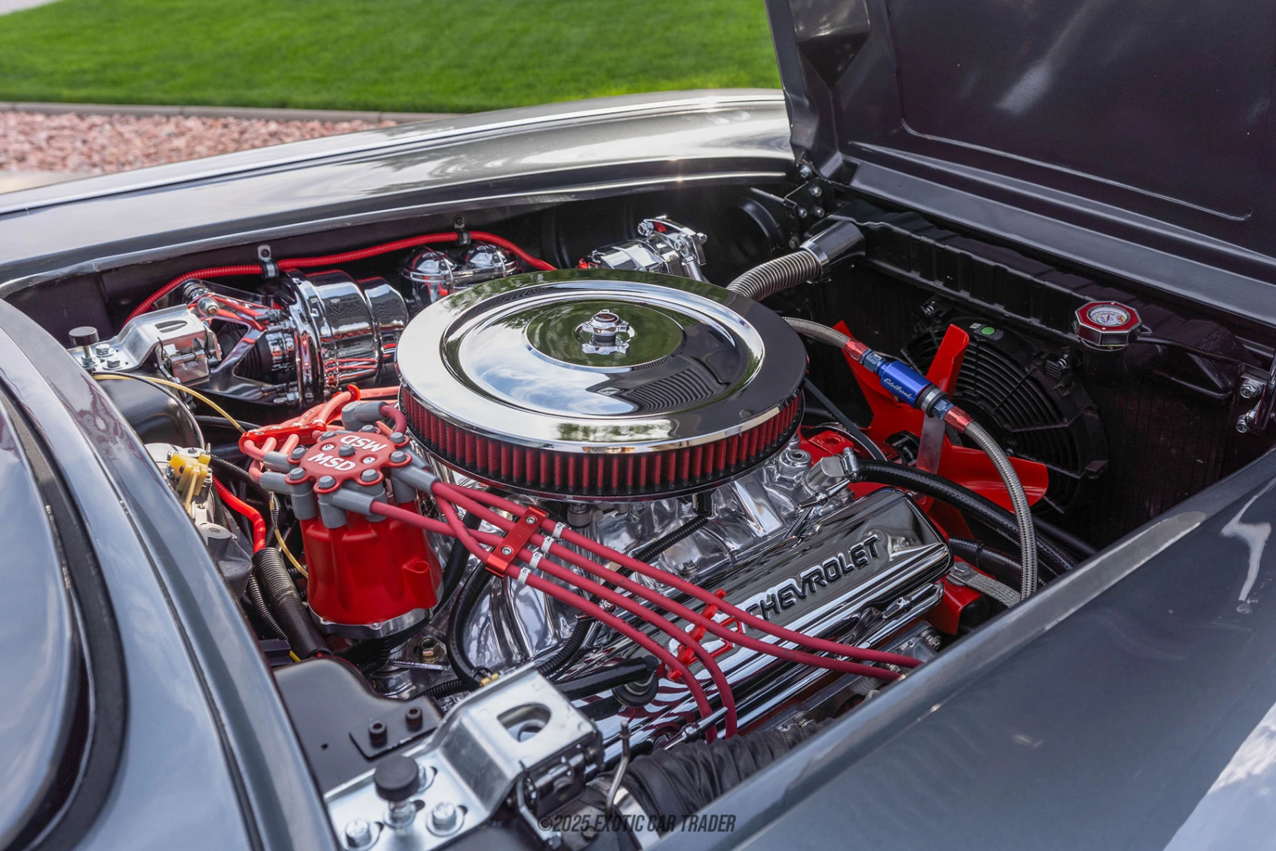 The mechanical upgrades, on the other hand, are far from minimal. The spotlessly shiny chrome engine sitting under the forward-hinged hood is a 350ci GM crate engine. This has been reportedly upgraded with MSD electronic ignition and an aftermarket alternator, breathing through a 600CFM Holley carburetor set-up with electric choke. Attention has been paid to the details even under the hood, with the oil filler cap bearing the Corvette flags despite this being a crate engine. It works with a 4-speed manual transmission to drive the rear wheels and turn fuel into a whole lot of fun. Stopping power has also been improved with 4-wheel Wilwood disc brakes.