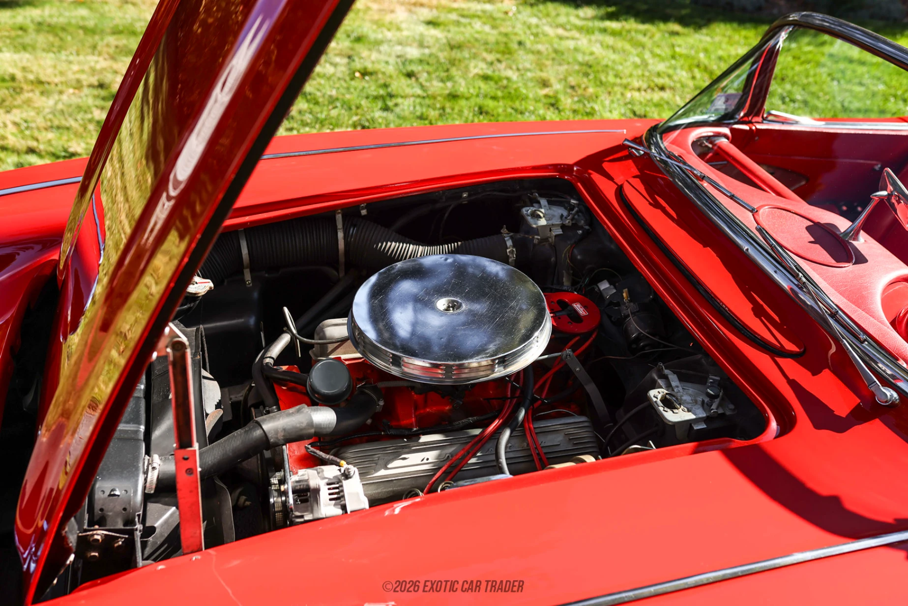 Powering this Corvette is a 327ci naturally aspirated V8 equipped with a 4-barrel carburetor, delivering strong and responsive performance typical of early American sports cars. Paired with a 4-speed manual transmission, the drivetrain offers a highly engaging driving experience with direct control and classic mechanical feedback. A 4.56 rear differential ratio enhances acceleration, while upgrades such as a modern radiator and four-wheel disc brakes improve cooling and stopping performance. The dual polished exhaust system not only enhances performance but also delivers the unmistakable sound of a vintage V8, making this Corvette as enjoyable to drive as it is to admire.