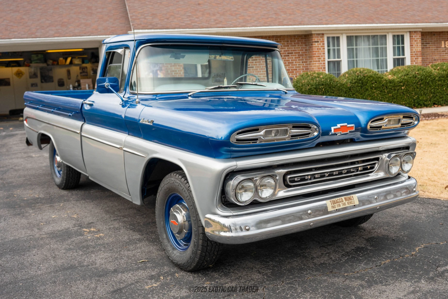 The exterior is finished in a period-correct two-tone color scheme, a hallmark of early Apache styling that highlights the truck’s clean body lines and distinctive dual-headlamp front end. Subtle chrome accents and steel wheels reinforce its factory-era appearance. Inside, the cab remains simple and functional, featuring a bench seat, body-color dash accents, and original-style controls. The column-mounted shifter and uncluttered layout emphasize usability and visibility, reflecting Chevrolet’s practical design philosophy of the time.