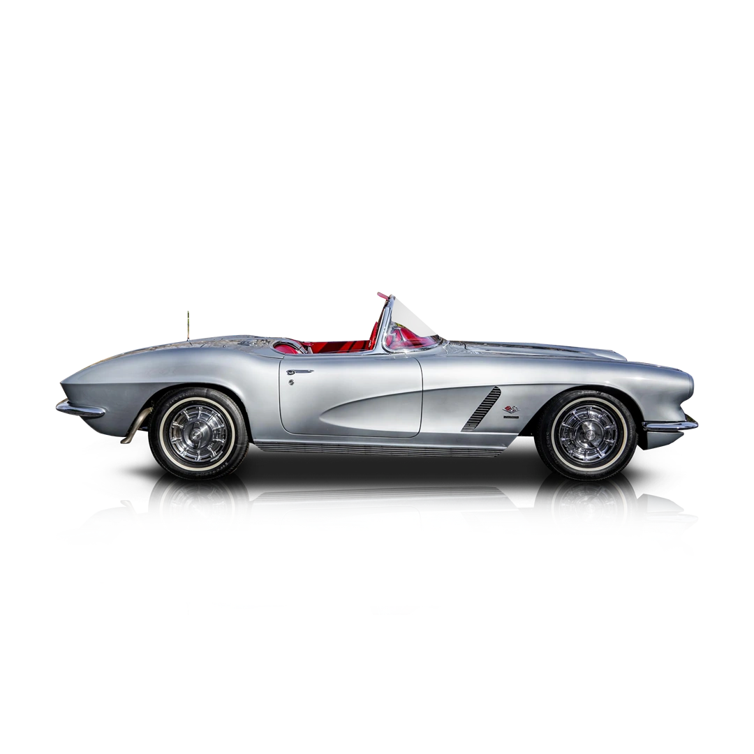 This 1962 Chevrolet Corvette Fuelie represents the final and most refined year of the first-generation fuel-injected performance models, combining iconic styling with the highest-output Rochester mechanical fuel-injection system available in the era. Finished in a striking silver exterior over a vibrant red interior, the car presents as a classic high-spec convertible that embodies early Corvette engineering excellence. Its correct Fuelie features, period-accurate trim, and distinctive cockpit layout highlight a well-preserved example of one of the most desirable C1 configurations.