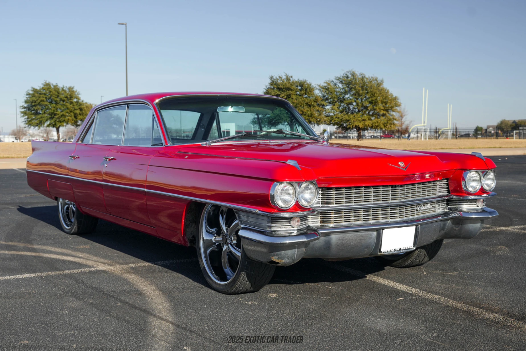 The exterior of this Cadillac DeVille is finished in a vibrant red, which enhances its classic contours and ensures it stands out on the road. The original black interior is well-preserved, adding to the authenticity of this classic vehicle. Power windows offer modern convenience, while the original interior details showcase the craftsmanship typical of Cadillac. The combination of the bold exterior color and elegant interior design results in a stunning visual appeal that captures the nostalgia of the early 1960s.