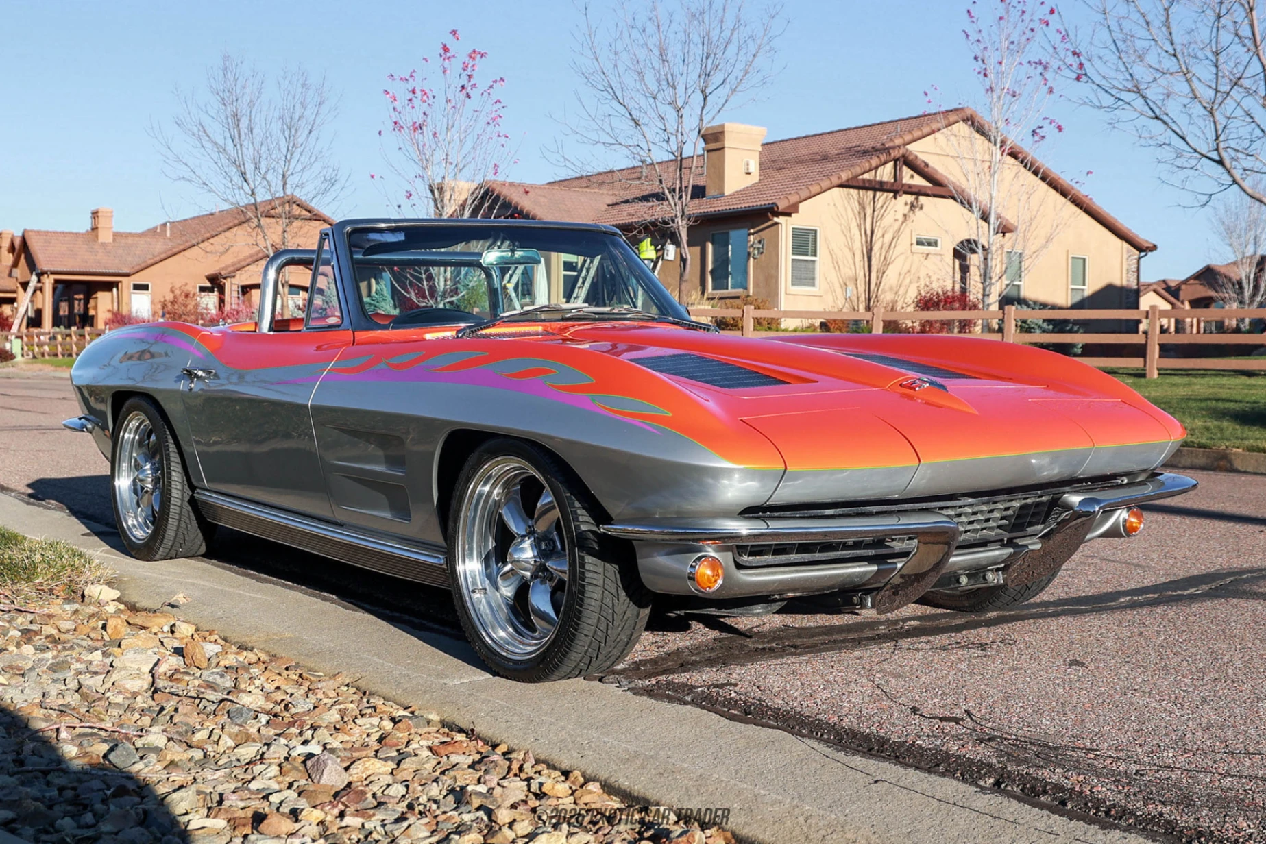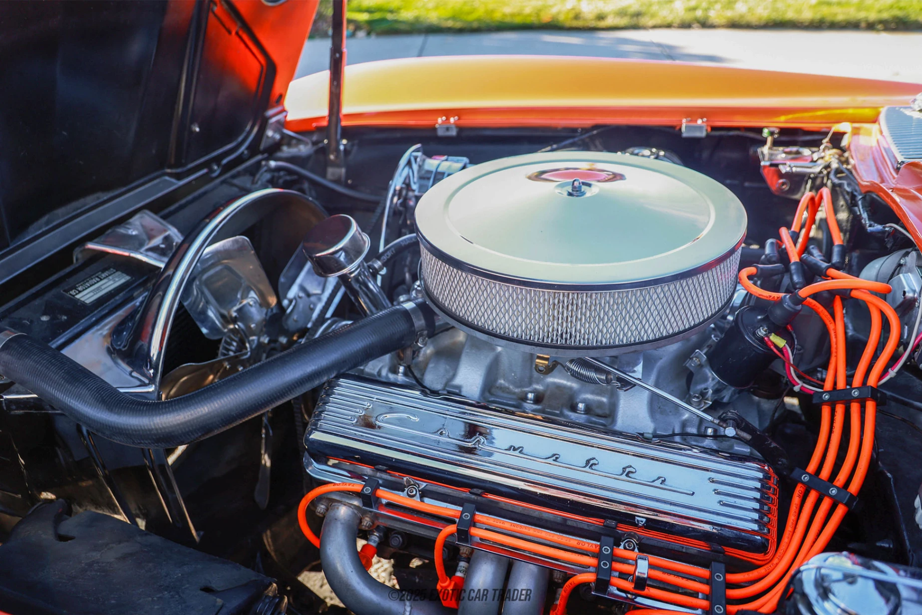 The stunning two-tone paint job on this 1963 Chevrolet Corvette Sting Ray Convertible is an awe-inspiring combination of silver and orange. It looks amazing in photos, but when you see it in person, your jaw will literally drop! There are some exterior flame graphics, a polished roll bar, and a set of polished 5-spoke American Racing alloy wheels that look like they should have been standard fitment for every C2! The car comes with a black convertible soft top, but you’ve also got a hard top included as well, giving you two cars in one, basically. The black and silver interior of this 1963 Chevrolet Corvette Sting Ray Convertible has been upgraded with a few modern conveniences, such as heated seats and an aftermarket stereo system. You’ll also find an aftermarket steering wheel that once again, looks perfect for this car.