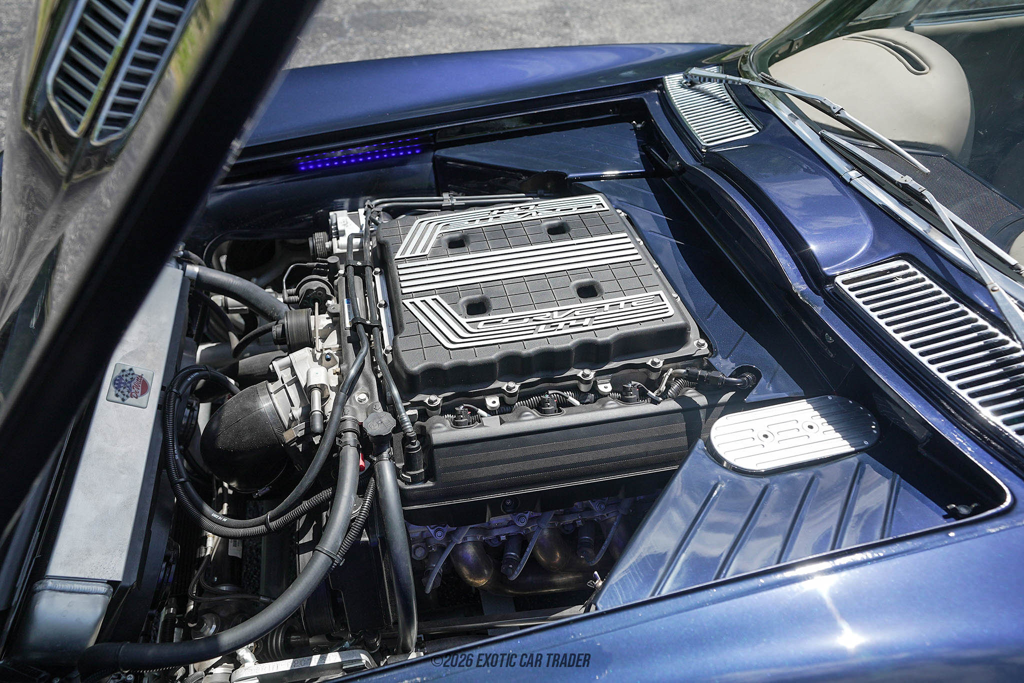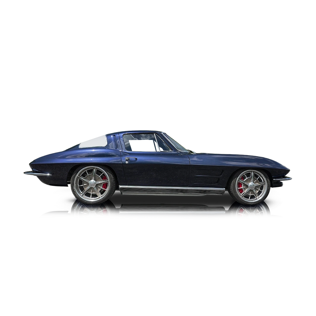 The 1963 Chevrolet Corvette Split Window Coupe is one of the most iconic American collector cars ever produced—but this example elevates that legacy to an entirely different level. This is not simply a restored classic; it is a meticulously executed, no-expense-spared restomod that blends timeless design with modern engineering. With over 700 hours invested into the build, every detail has been carefully considered, from its SRIII custom chassis to its supercharged 6.2L powerplant and bespoke interior. Finished in a stunning Porsche Midnight Navy Blue and retaining the unmistakable split-window silhouette, this Corvette delivers both show-quality presentation and modern supercar performance. For collectors seeking a truly standout C2 that offers both heritage and innovation, this build represents craftsmanship at its finest.