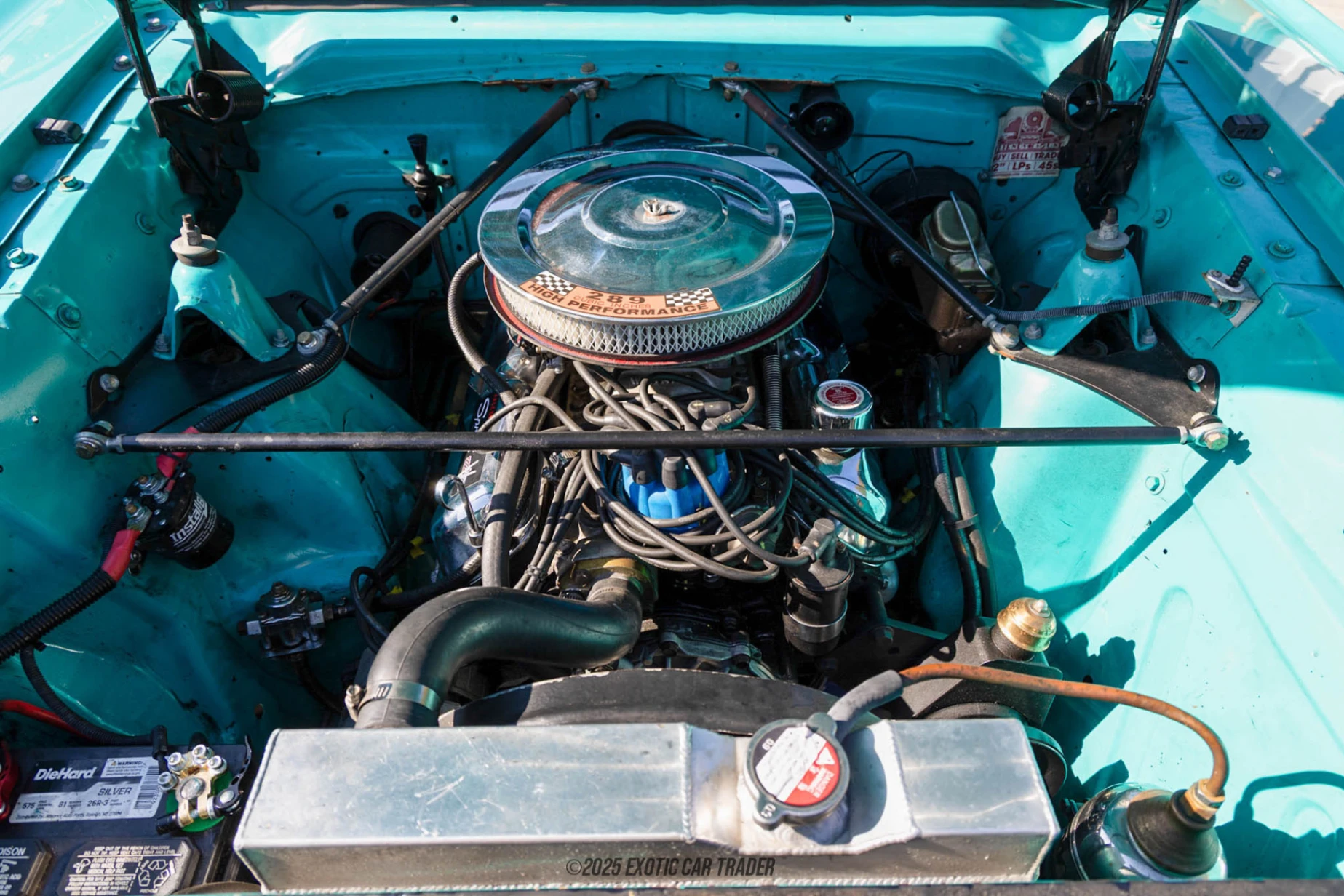 The exterior of the 1964 Ford Falcon Sprint is painted in a striking Turquoise hue, exuding a nostalgic vibe that captures attention on any road. Complementing its vibrant exterior is a Navy interior, offering a stylish contrast that enhances the overall aesthetic of the vehicle. The careful combination of these colors reflects the classic automotive designs of the era, making the Falcon Sprint a standout choice for anyone who appreciates vintage styling.
