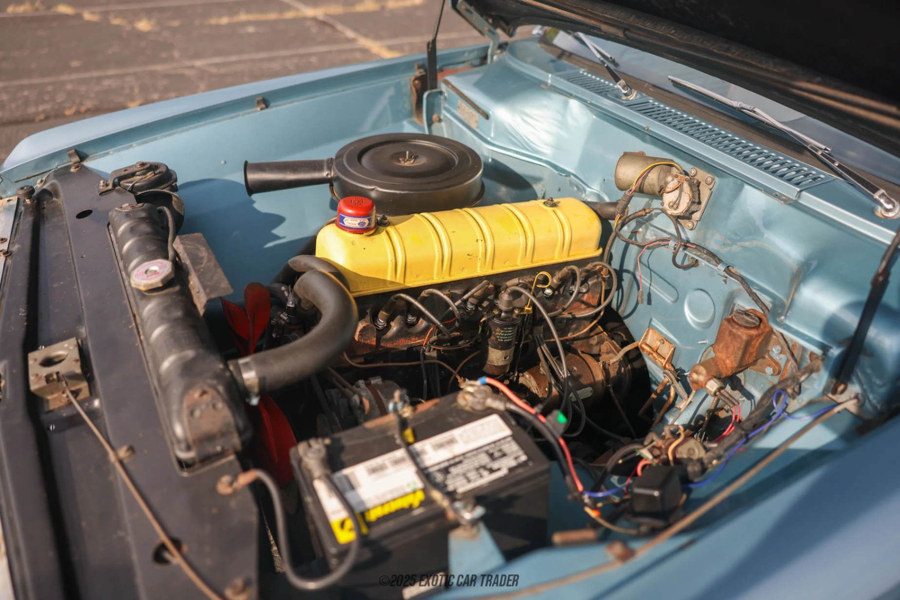 The Challenger’s clean, no-nonsense lines are enhanced by its fresh repaint in factory-correct blue, a hue that complements the restrained yet elegant proportions of the body. Chrome trim and period detailing reflect the styling cues of the era, while the matching blue interior continues the theme inside. Simplicity and originality define the cabin, offering a glimpse into Studebaker’s design philosophy during the final years of the company’s passenger car production.
