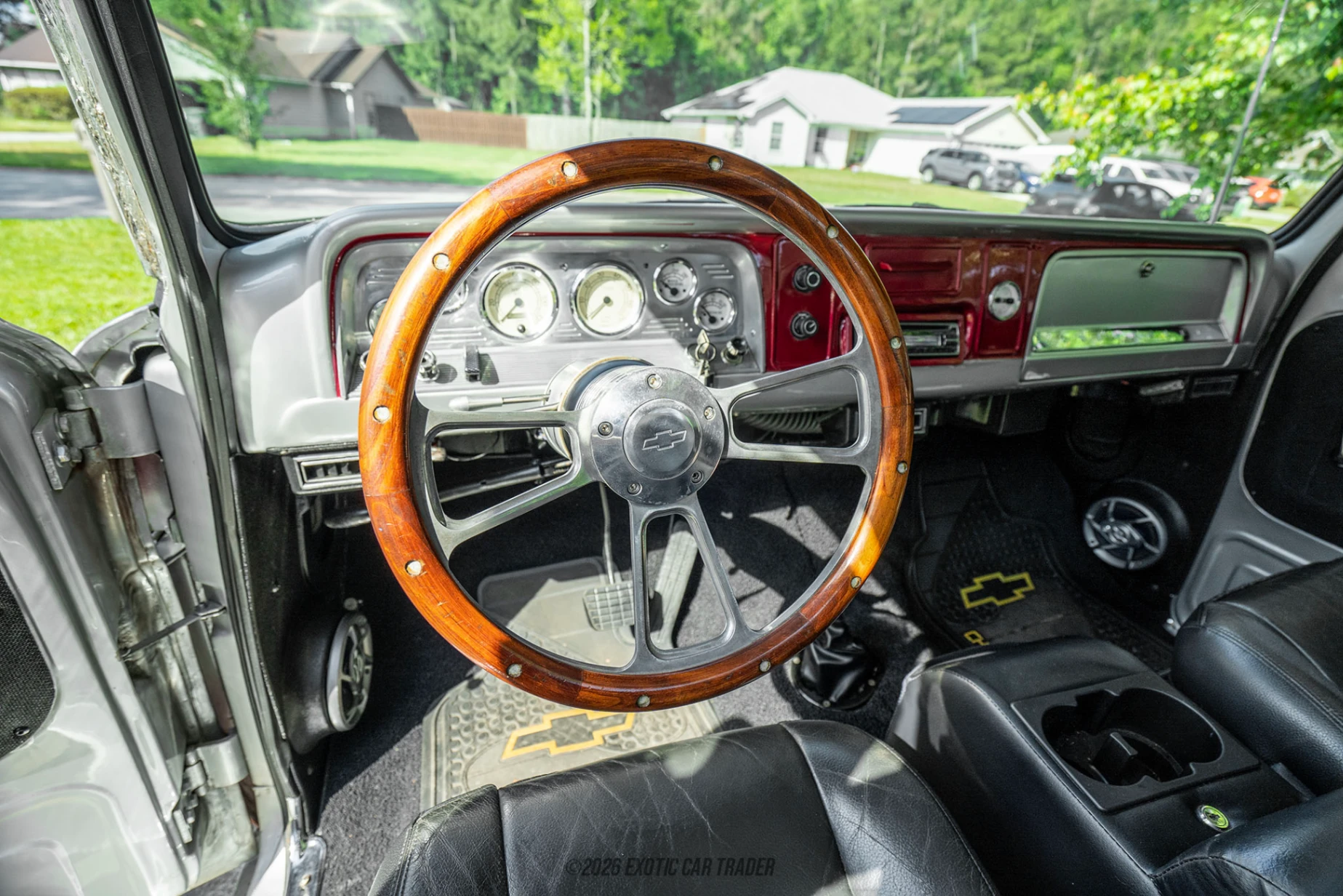 Powering this C10 is a 396ci naturally aspirated big-block V8, equipped with a 4-barrel carburetor that delivers strong, traditional American muscle performance. Paired with a 700R4 4-speed automatic transmission, this setup provides smoother shifting and improved highway drivability compared to original period-correct gearboxes. The upgraded suspension enhances ride quality and handling, while the aftermarket exhaust system gives the truck a deep, authoritative tone. Altogether, this build offers a well-rounded driving experience that combines classic power with modern reliability and usability.