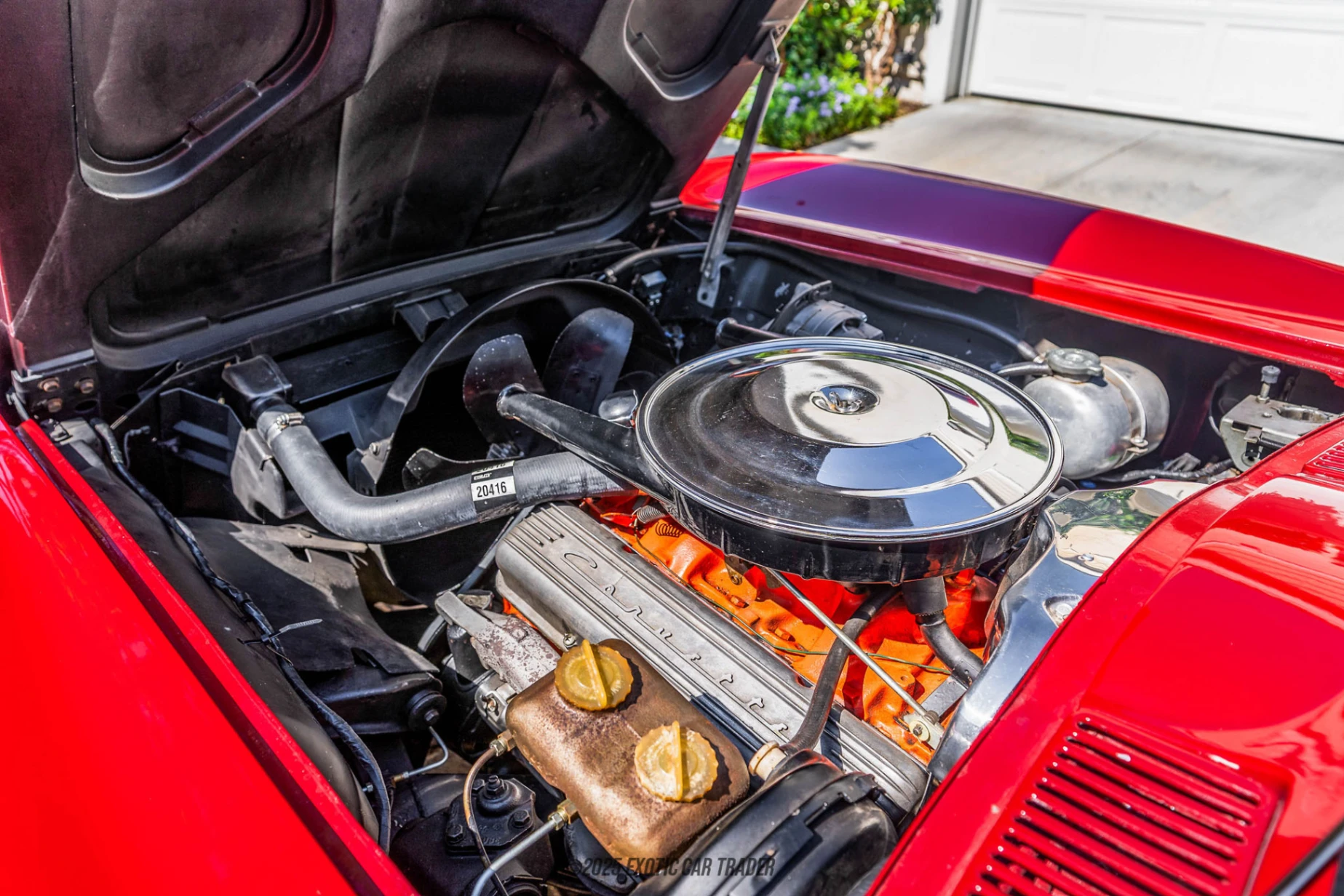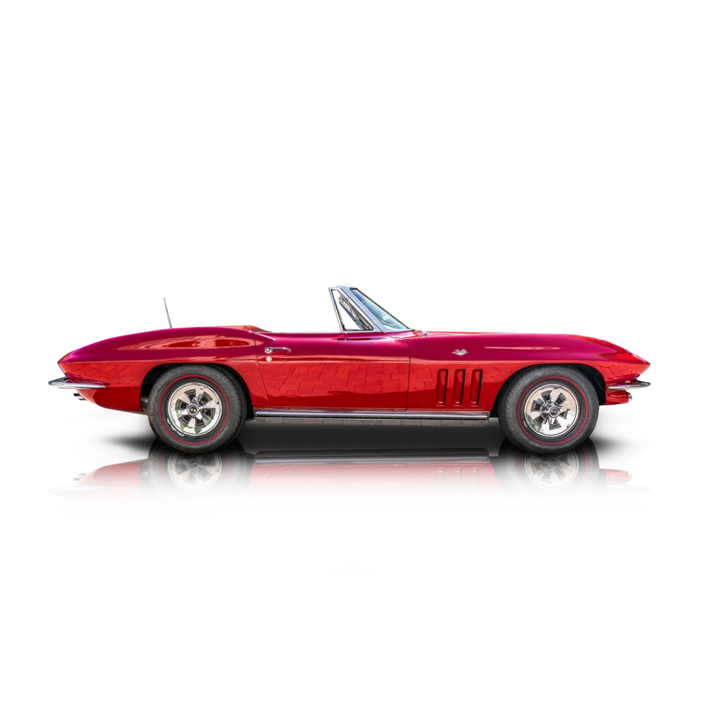 The 327ci V8 that moves this 1965 Chevrolet Corvette Convertible. It’s a throaty and responsive powerplant and a pleasure to rev up as a result. Thanks to the car’s four-speed manual transmission, you can really have fun with it. Rear-wheel drive is, of course, standard.