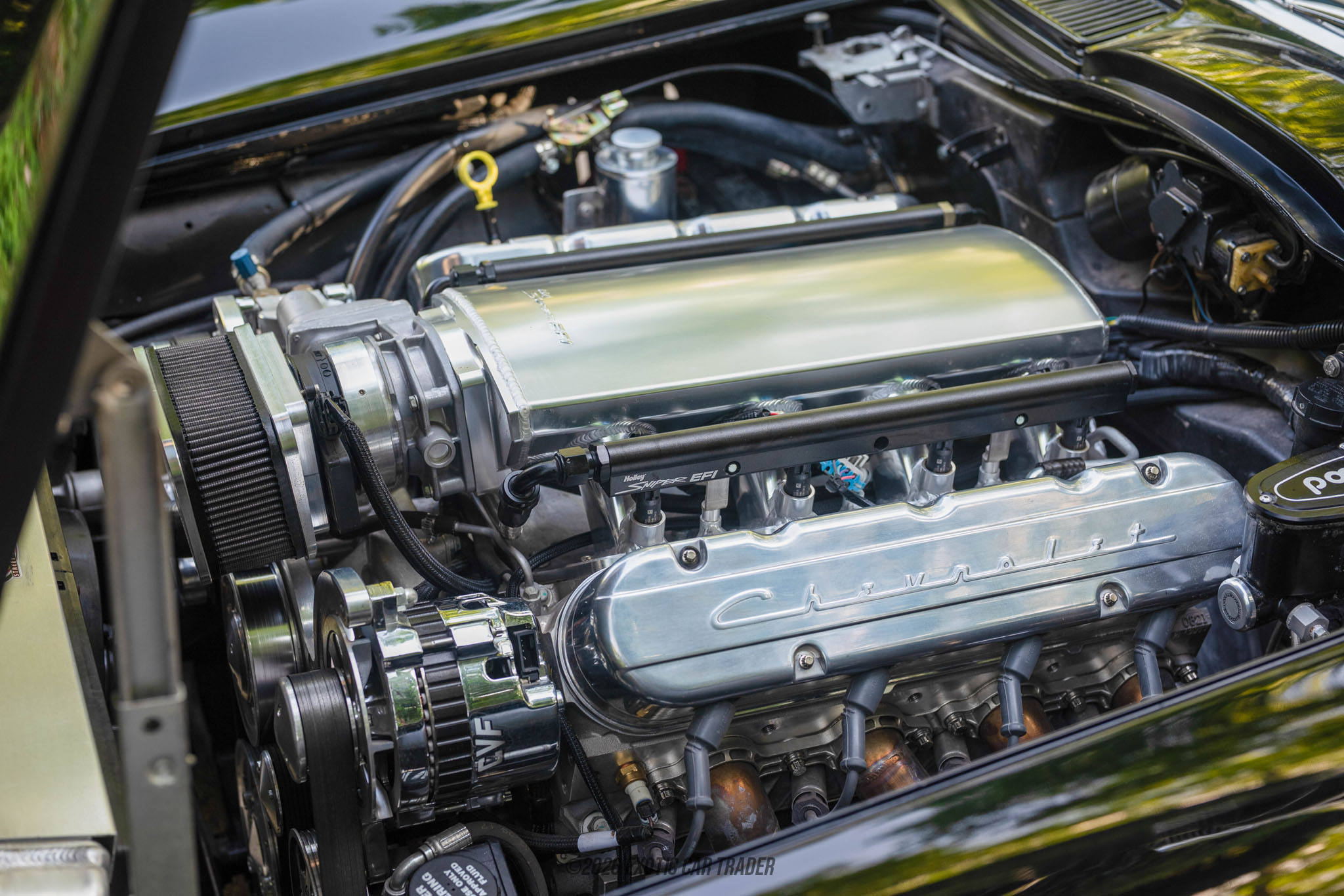At the heart of this Corvette is a 6.2L naturally aspirated GM LS3 V8, a modern performance engine known for its strong horsepower output, reliability, and smooth power delivery. Equipped with electronic fuel injection, it provides instant throttle response and dependable operation in all conditions. Paired with a Tremec 6-speed manual transmission, the setup offers precise gear engagement and an engaging driving experience. Supporting upgrades such as Wilwood 4-wheel disc brakes with 6-piston front calipers ensure that the car’s stopping power matches its performance, making this restomod a well-rounded blend of classic design and modern engineering.