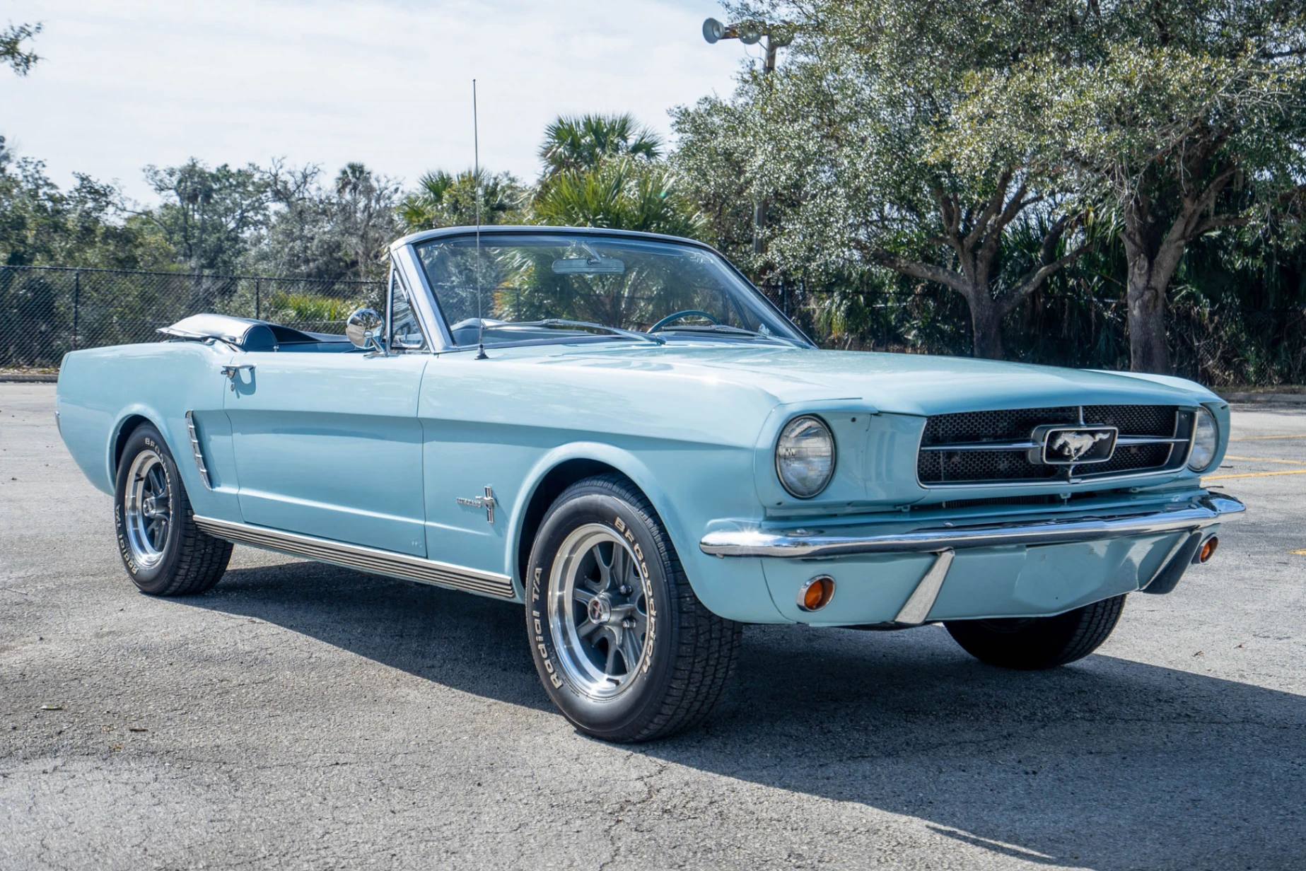 The exterior of this 1965 Ford Mustang Convertible is finished in a gorgeous Baby Blue hue that captures attention from every angle. Its sleek design, accented by classic features, truly embodies the spirit of the 1960s. Inside, the cabin offers a refined blue vinyl interior that is both inviting and stylish. The combination of the exterior and interior colors creates a visually striking profile, ensuring that this Mustang not only performs well but also reflects an impeccable sense of style. Comfortable seating and a well-laid-out dashboard enhance the overall driving experience, making each journey enjoyable.