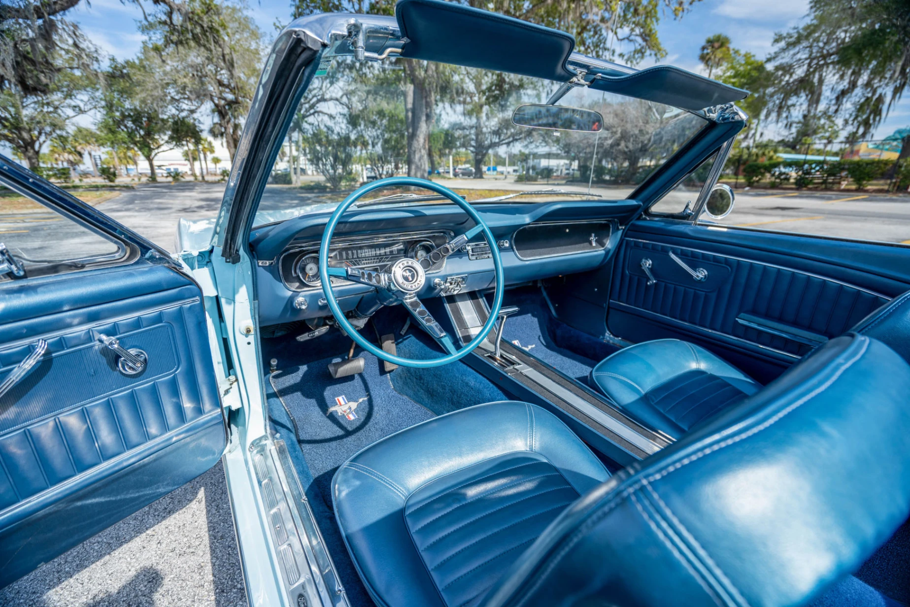 Under the hood, this Mustang Convertible is powered by a naturally aspirated 302ci V8 equipped with a 4-barrel carburetor, delivering strong and reliable performance. Power is sent to the rear wheels through a 3-speed automatic transmission, making this car easy and enjoyable to drive. Power steering improves low-speed maneuverability, while the front disc brake conversion significantly enhances stopping power. Combined with a dual exhaust setup, these upgrades make this Mustang a well-rounded classic that’s built to be driven and enjoyed.