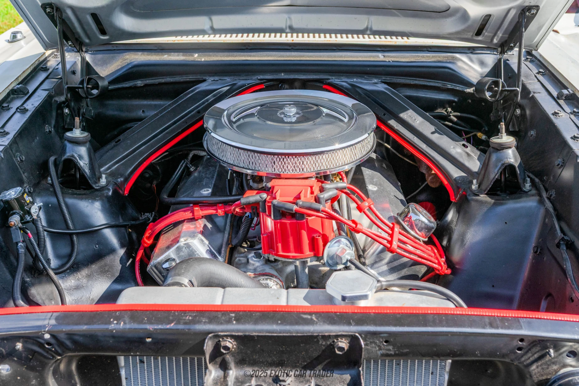 One look at this Comet and you immediately recognise that this is a car with character and personality. Reportedly still in its original White paint, the rest is all hand-painted graphics, tastefully done, working with the boxy design of its body panels. 14” American Racing wheels sit on the front, while 16” steel wheels adorn the rear with wider rubber. The stacked lights, angled lines, and strong stance create a striking image. You know this Comet is ready to talk business. Climbing inside, you’ll find yourself with a new red interior, complementing the white that adorns the outside. Careful attention to detail has been given to ensure that the aesthetic feel inside matches what is expressed the moment you look upon it. Red adorns the seats and dashboard, which retains its classic appearance but with a few additional gauges to monitor the health of the engine. No modern gadgets here. It’s all pure American engineering and kept pure to be driven as boldly as it presents itself. It’s classic, it’s expressive, and it’s bold.