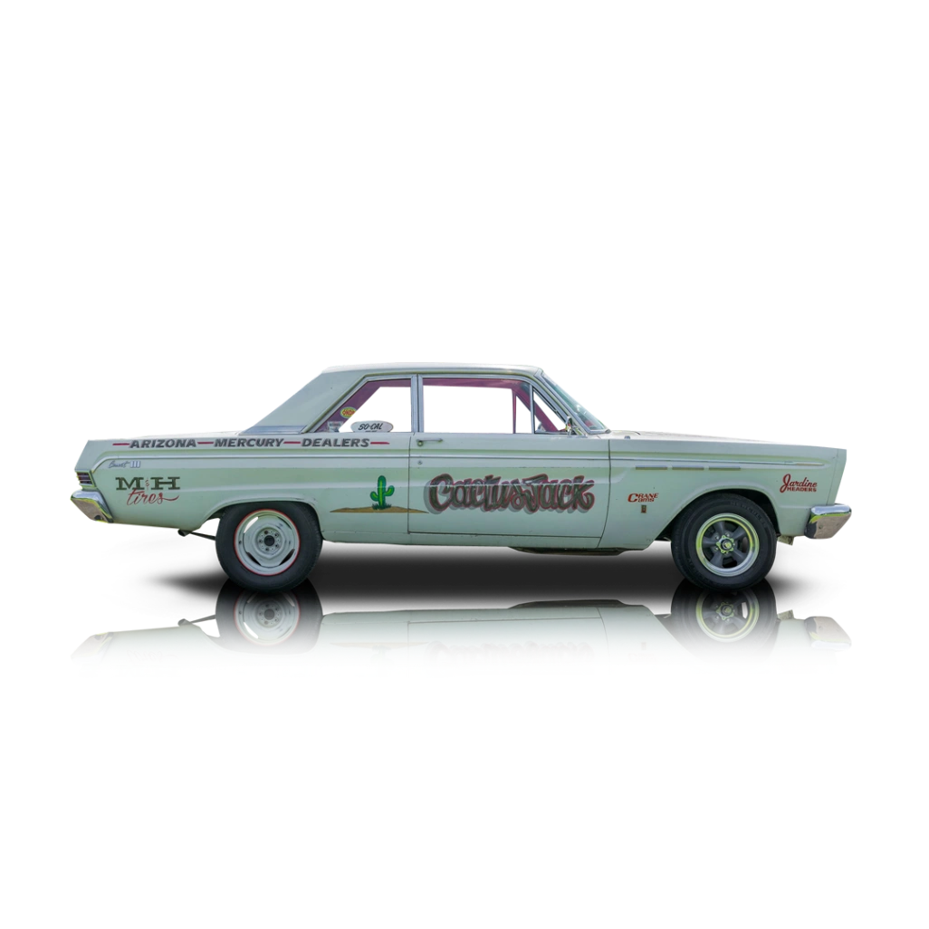 This 1965 second-generation Mercury Comet blends authentic heritage with a purposeful, road-legal drag racing presence. Originally built on Ford’s proven platform, it has retained its distinctive charm and character, enhanced by carefully hand-painted graphics and the natural patina of time. When new, this Comet was campaigned in stock class throughout the Southwest in its 289/225 hp configuration, establishing a proven competition pedigree. Its most recent engine build was completed in 2015 at the renowned SoCal Speed Shop by Jimmy Shine, whose signature remains on the dash. Due to oversized rear tires, the odometer reading of 60,407 miles is higher than the actual miles driven. With a compact yet wide frame that offers excellent stability, this Comet is built for straight-line performance and delivers it with ease. It reportedly handles well on the open road, runs cool, and maintains solid oil pressure, making it equally enjoyable for cruising or preserving as a piece of racing history. This is a car ready to be driven, appreciated, and kept for years to come.