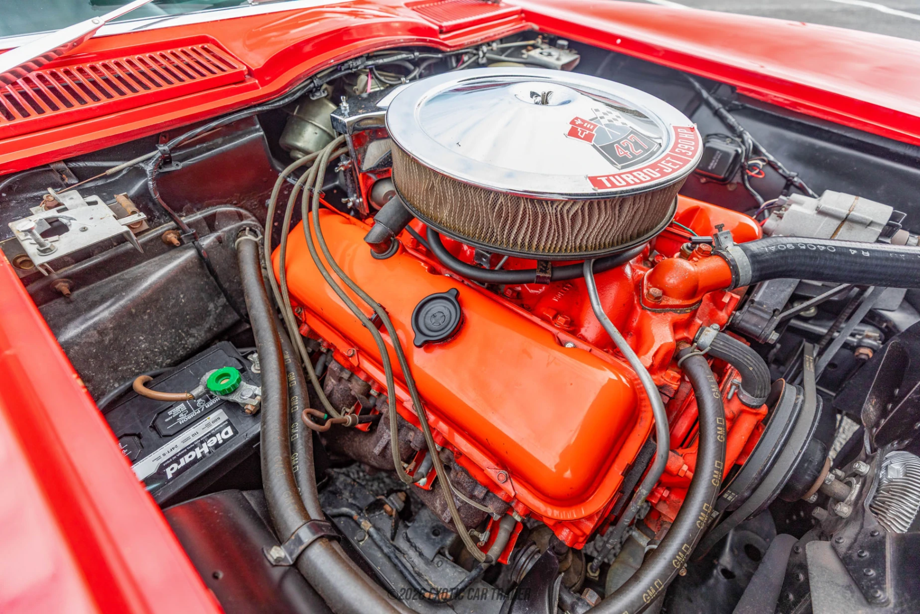Powering this 1966 Chevrolet Corvette Sting Ray is the legendary 427 cubic-inch Turbo-Jet V8, a naturally aspirated big block rated at 390 horsepower in L36 form. Fed by a 4-barrel carburetor and breathing through side-exit exhaust, the engine delivers massive torque and a thunderous exhaust note that defines the big-block Corvette experience. Paired with a 4-speed manual transmission, this setup provides raw, mechanical feedback and classic muscle-car acceleration. Combined with four-wheel disc brakes—advanced for its time—the 1966 Corvette remains one of the most formidable American performance machines of the 1960s.