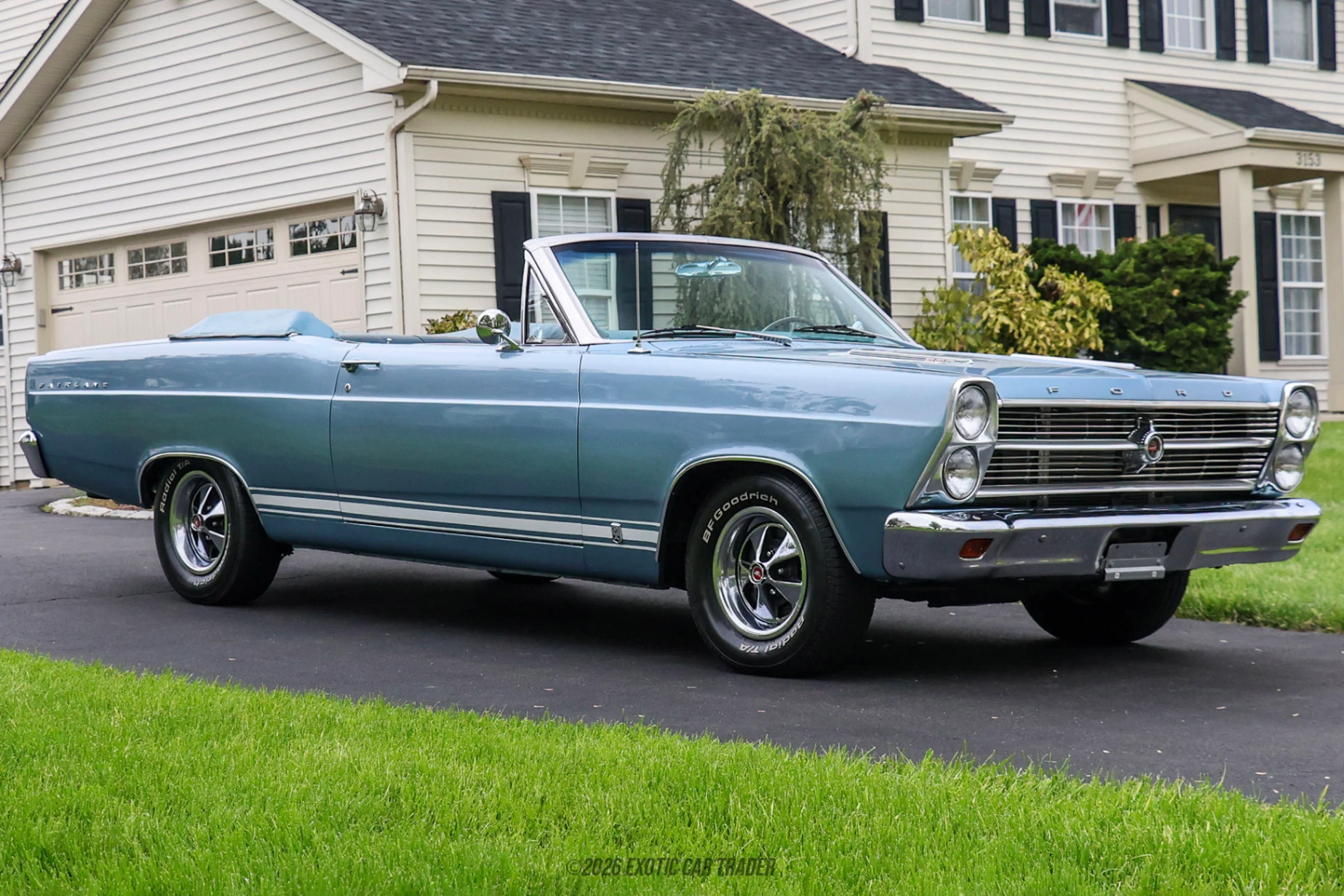 The 1966 Ford Fairlane 500 Convertible is a standout example of classic American open-top motoring, elevated by the presence of a desirable GTA-spec 390ci V8. Showing 11,364 miles on the odometer, this Fairlane blends vintage styling with thoughtful upgrades that enhance both reliability and driving enjoyment. The GTA engine—originally associated with Ford’s performance-oriented Fairlane GT/A models—adds an extra layer of appeal, delivering strong torque and smooth power delivery. Finished in light blue metallic over a blue interior with a white convertible top, this car embodies the spirit of effortless cruising with a performance edge.