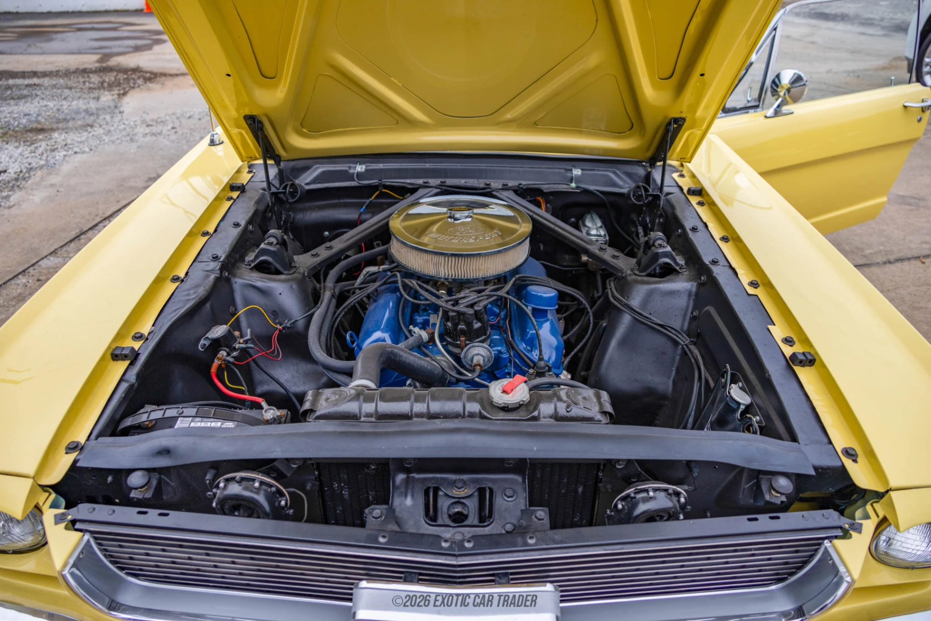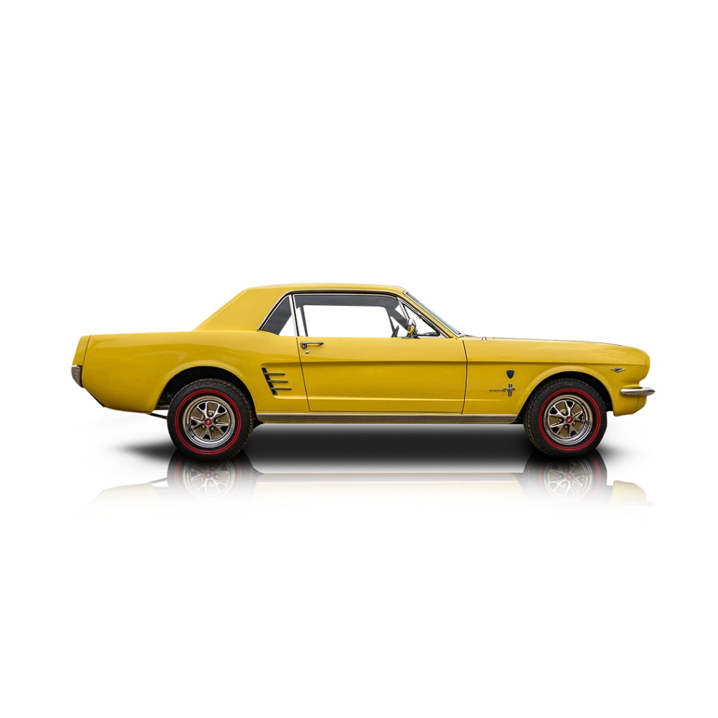 The exterior of this 1966 Ford Mustang High Country Special is finished in Aspen Gold, a signature color offered only as part of the High Country Special package. High Country Special badging sets it apart from standard Mustangs, while GT-style fog lights and styled steel wheels complete the classic mid-1960s performance look. The car retains a clean, understated appearance that highlights its rarity rather than relying on excessive visual modifications. The interior features a Black vinyl cabin consistent with factory specification, maintaining the Mustang’s straightforward and driver-focused design. The layout remains true to the era, offering a simple, functional cockpit that complements the car’s mechanical character and collector appeal.