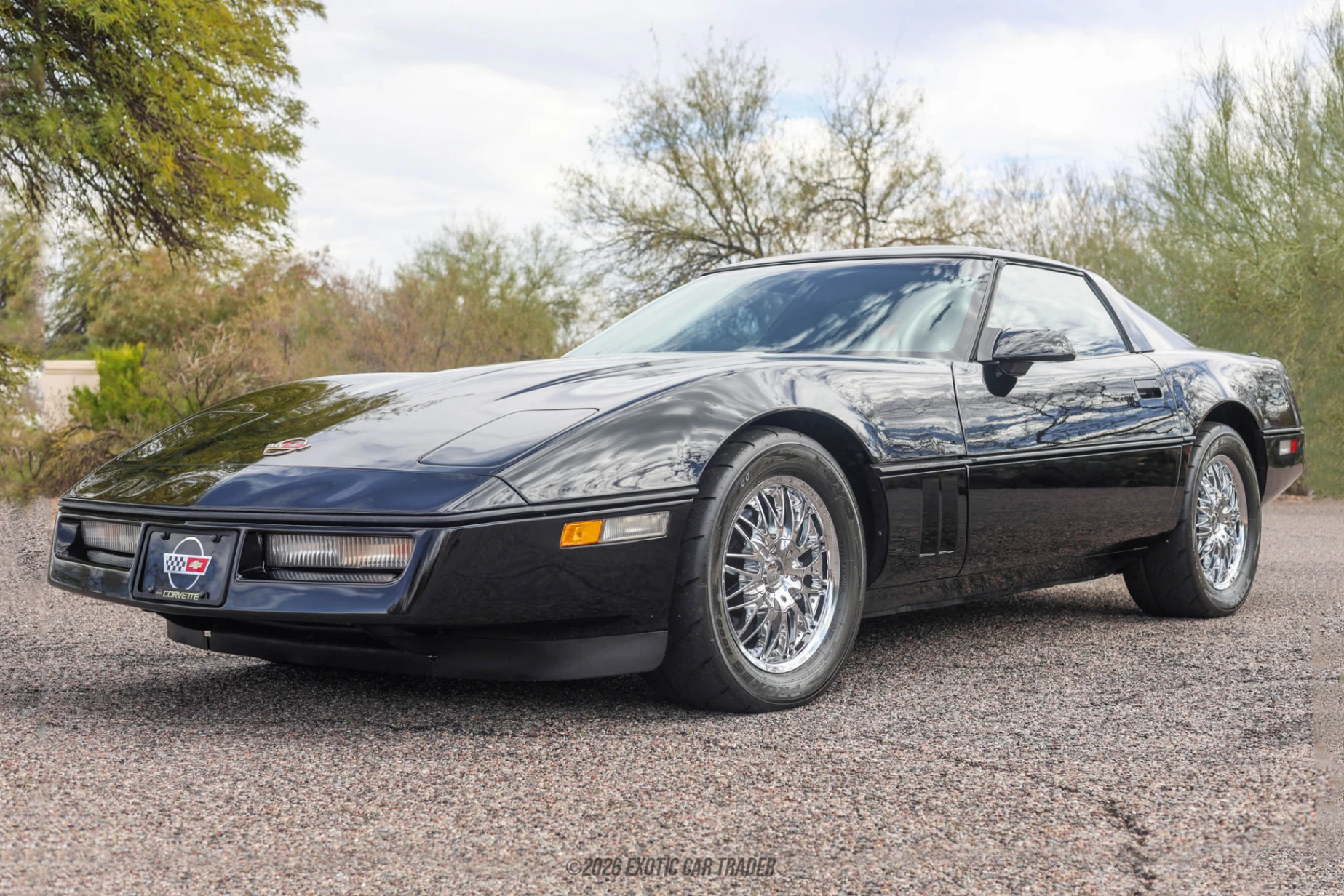 The 1985 Chevrolet Corvette represents an important chapter in the C4 generation, as it was the first year for the L98 Tuned Port Injection V8. This example, showing 71,398 miles, is finished in Black with subtle Ghost Maroon racing stripes over a striking Red leather interior — a very period-correct and attention-grabbing 1980s specification. The C4 marked a dramatic evolution from the C3, introducing advanced aerodynamics, a fully digital dashboard, and a more sophisticated chassis. With tasteful performance-oriented upgrades such as chrome headers and a polished engine bay, this Corvette blends factory character with enthusiast personalization.