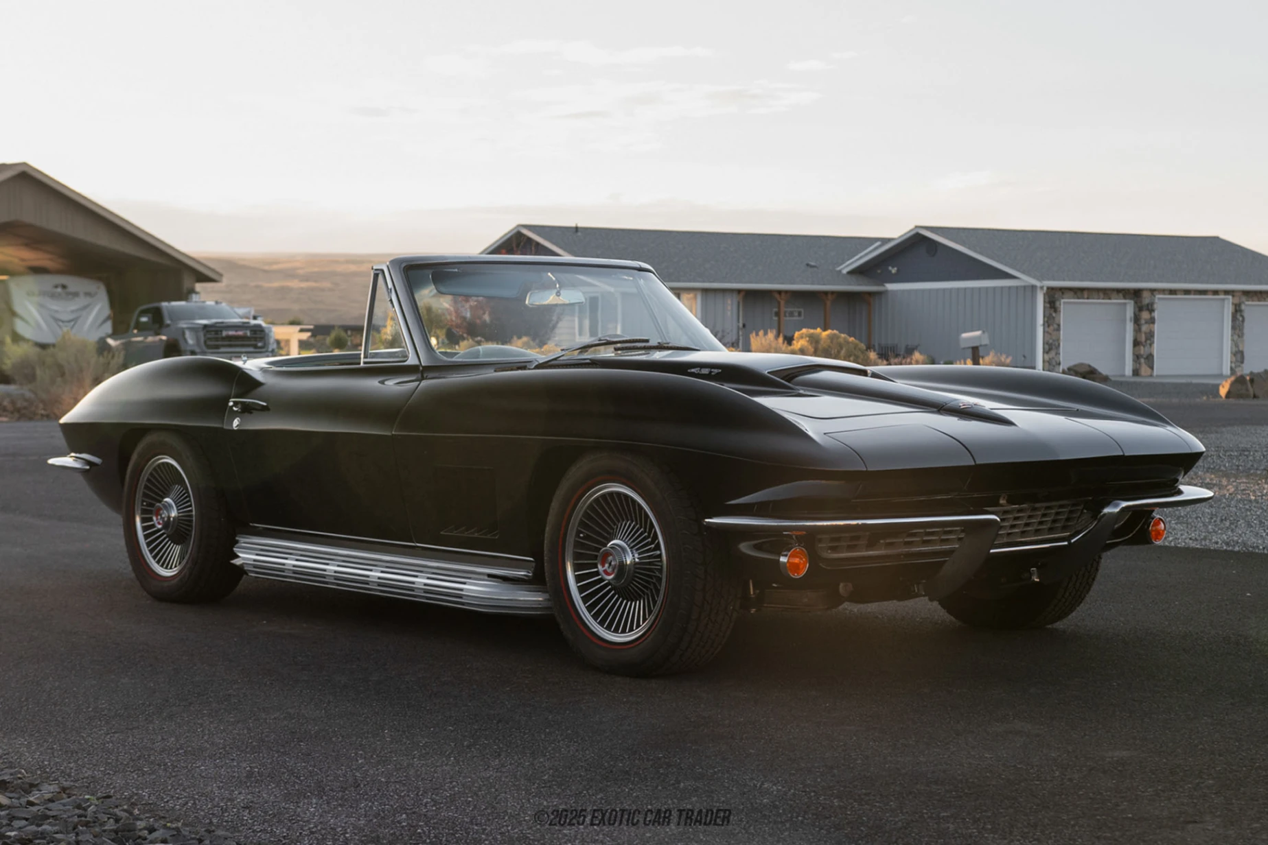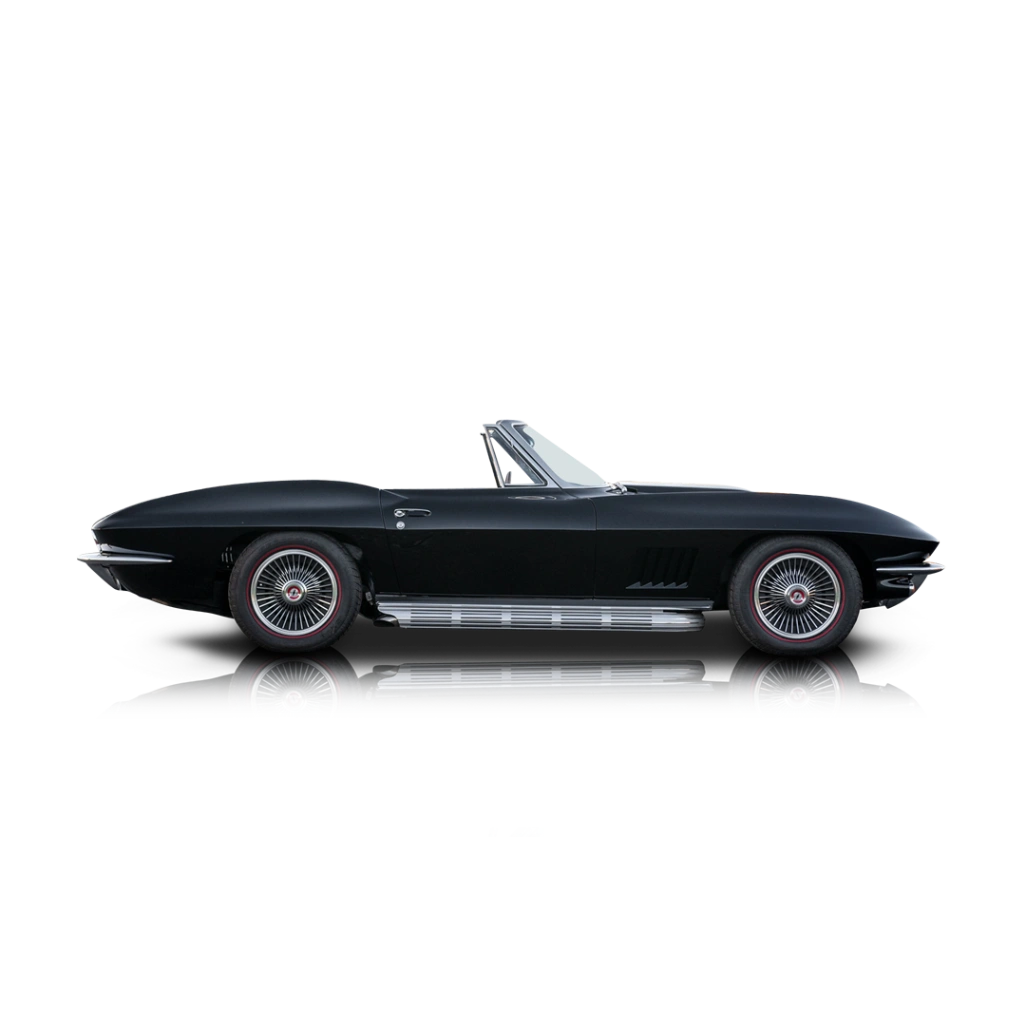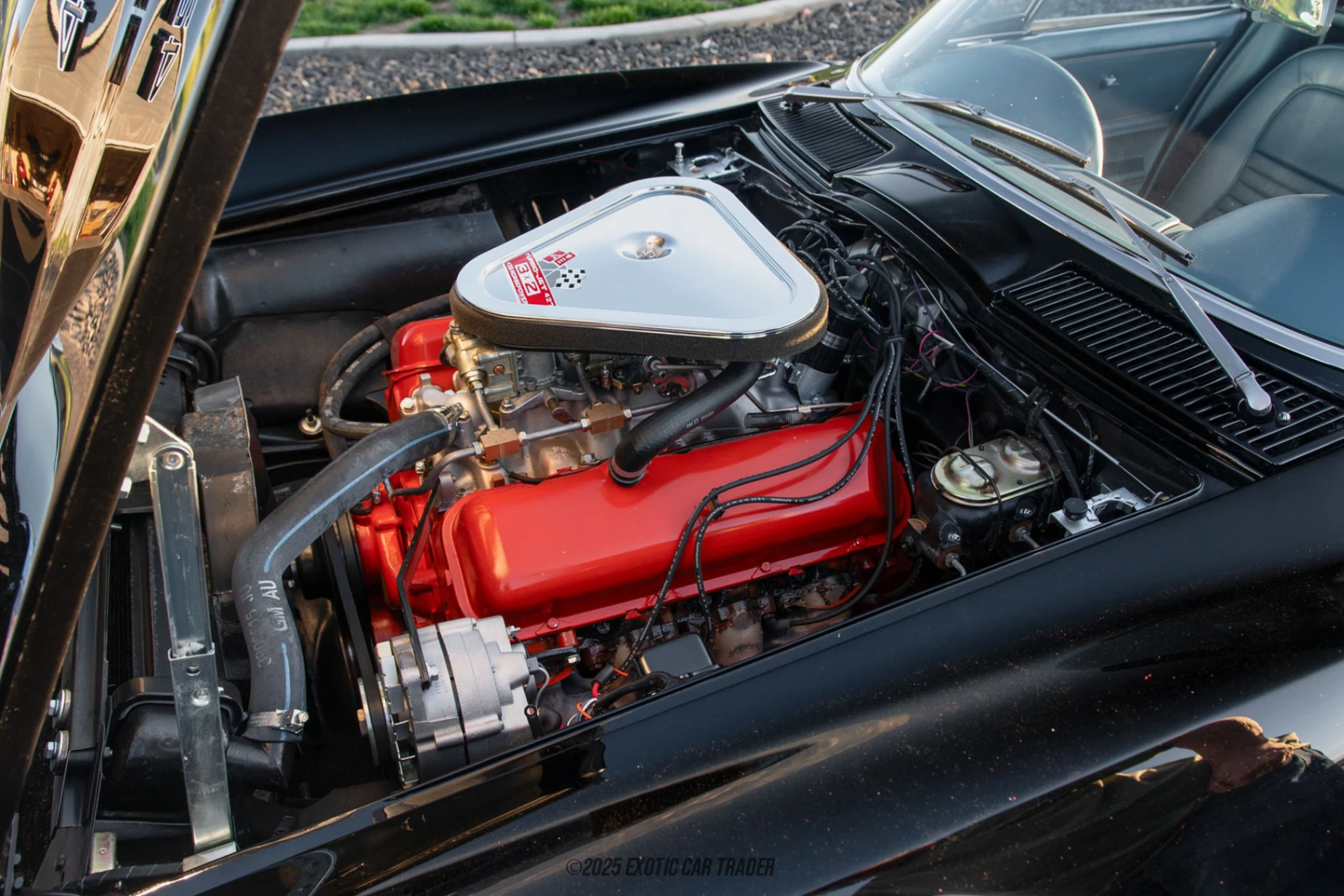 The 427ci V8 that powers this 1967 Chevrolet Corvette Convertible gets its air and fuel mix from a trio of Holley 2-barrel carburetors. Indeed an interesting set-up, this was called the Tri-Power system. The center carb handles most duties, with the other two acting as ‘dumpers’ or secondaries under full throttle driving. Power delivery is sent to the rear wheels via 4-speed manual transmission w/ 3.55 gears, as reported by the current owner.