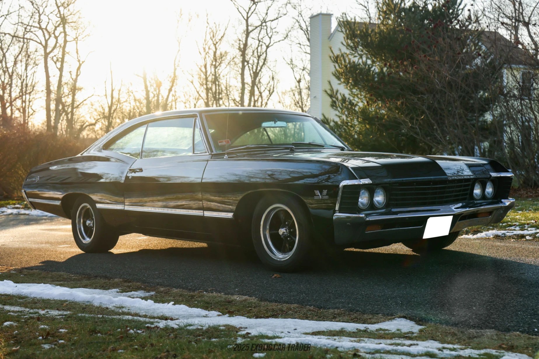 The 1967 Chevrolet Impala occupies a unique place in American automotive culture, famously sharing its model year with the iconic “Baby” from the television series Supernatural. While this example is configured as a 2-door hardtop rather than the well-known 4-door sedan driven by the Winchester brothers, it remains no less compelling in its own right. Finished in black and powered by a big-block V8, this Impala delivers the visual presence and mechanical substance that defined Chevrolet’s full-size performance offerings of the era. Features such as a push-button starter and a period-correct radio further enhance its appeal, blending classic character with functional usability. Belonging to the fourth-generation Impala produced between 1965 and 1970, this car represents a mature and desirable chapter in the model’s evolution. As an authentic American classic with strong cultural recognition and enduring mechanical appeal, it stands as a rewarding vehicle to own, drive, and preserve, with desirability that continues to grow over time.