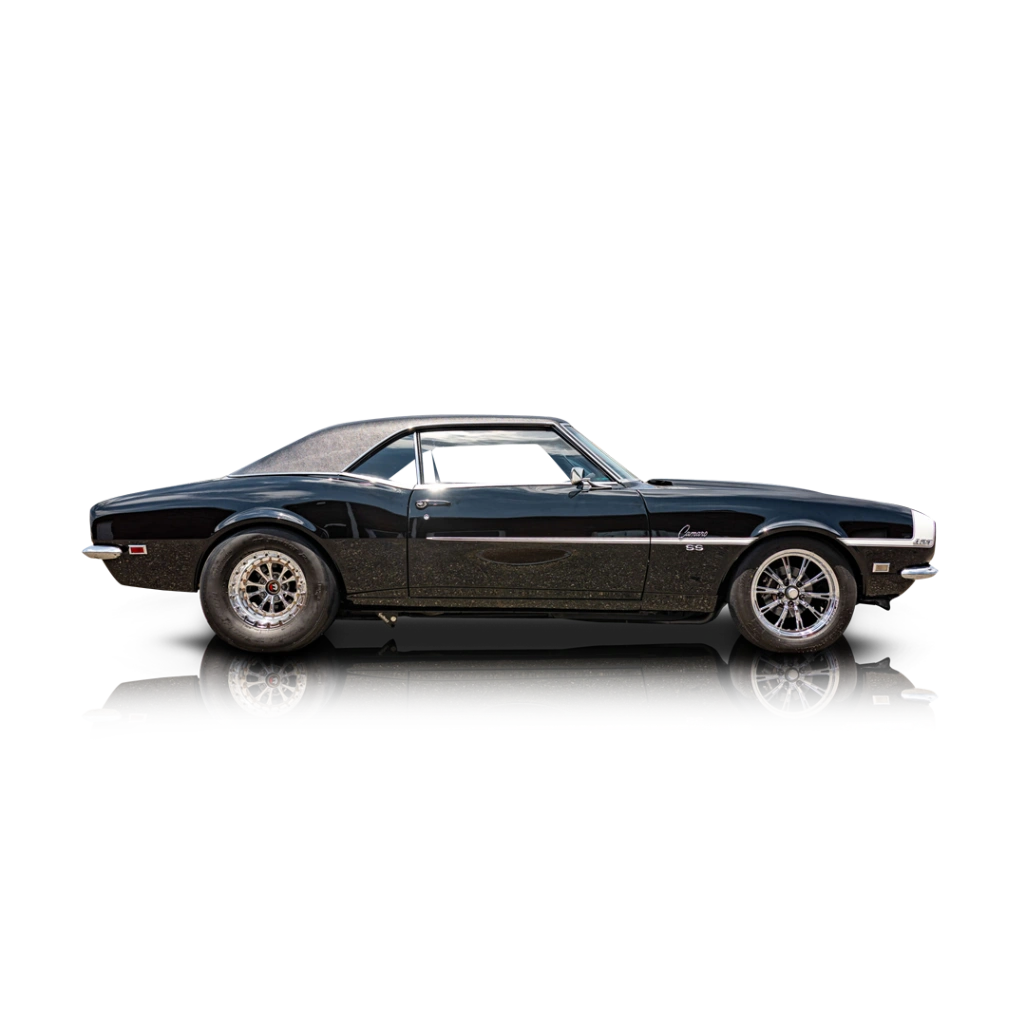 This 1968 Chevrolet Camaro blends classic first-generation styling with meaningful performance upgrades, creating a well-executed build with strong street presence. The seller states that the car is powered by a 427ci big-block V8, and the aggressive stance, polished wheels, and drag-style rear setup reinforce its pro-street character. Finished in black with white striping, the car maintains its vintage charm while incorporating modern performance enhancements, making it a compelling choice for enthusiasts who want both style and power.
