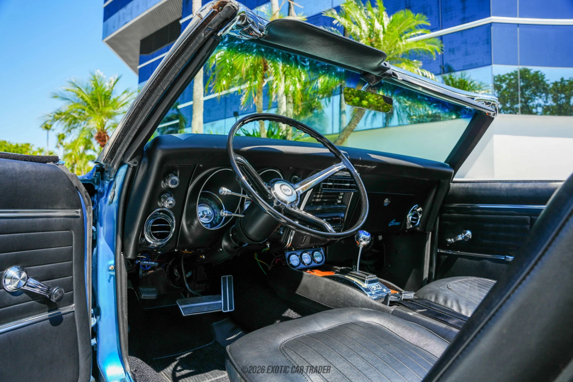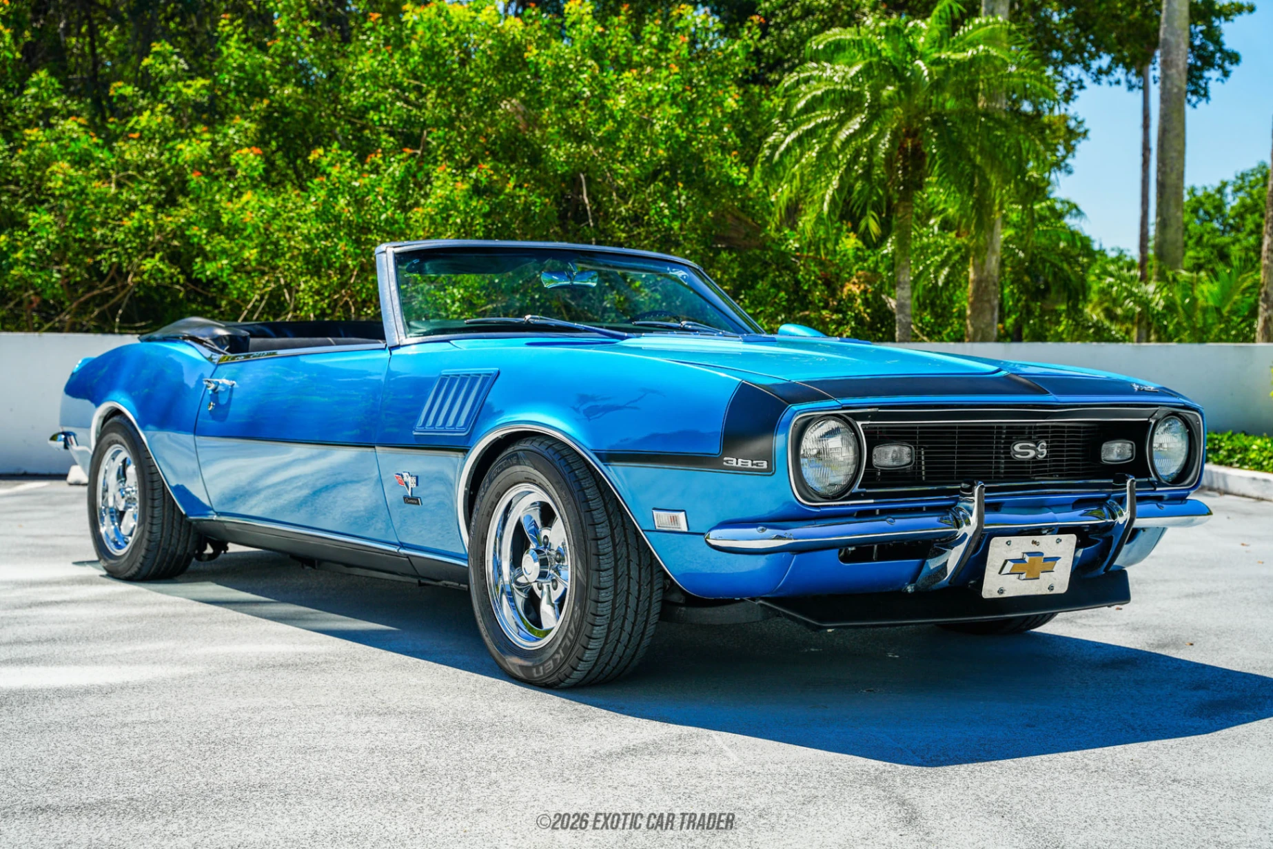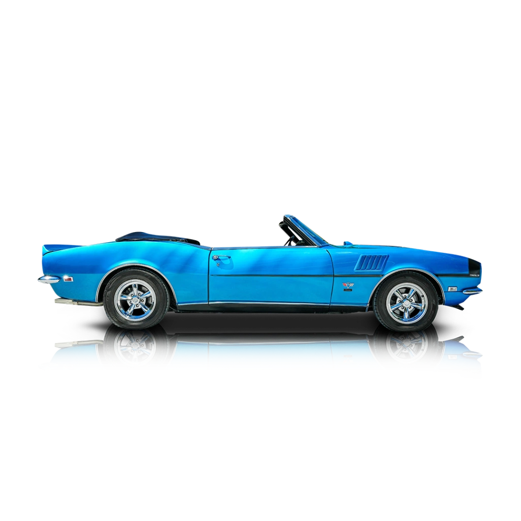 The 1968 Chevrolet Camaro Convertible stands as one of the most iconic expressions of first-generation American muscle, blending aggressive styling with open-top driving enjoyment. This particular example has been thoughtfully upgraded with a 383ci stroker V8 and a 700R4 automatic transmission with overdrive, making it far more capable than a stock configuration. With just over 31,000 miles shown, this Camaro offers a compelling mix of classic appeal and modern drivability. Finished in a striking blue over black with a white convertible top, it delivers the kind of presence and versatility that makes it equally enjoyable on weekend cruises or longer highway drives.