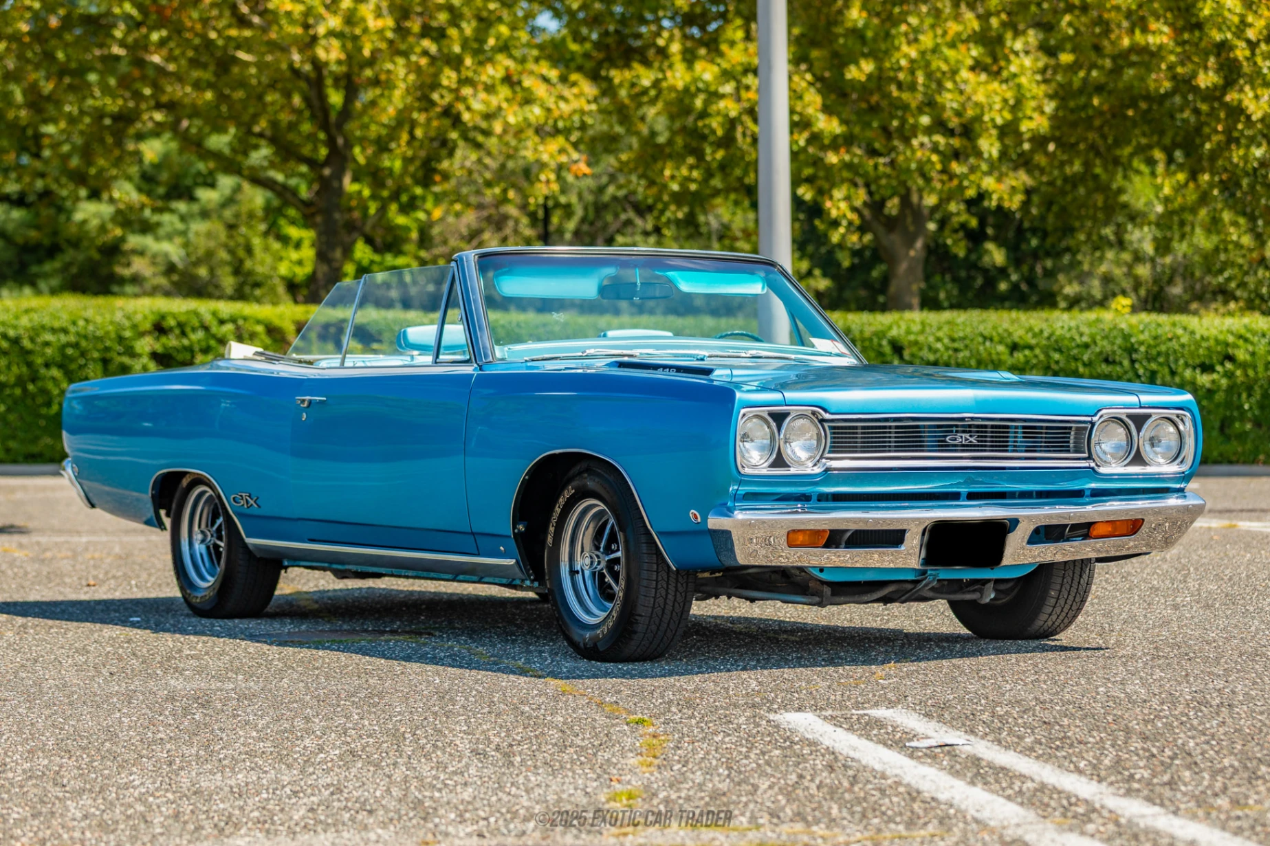 This 1968 Plymouth GTX Convertible presents an exceptional opportunity to acquire a true piece of Mopar muscle history, combining rarity, performance, and documentation. Finished in a striking Bright Blue Metallic with white accent stripes and a white convertible top, this example features the legendary 440ci “Super Commando” V8, paired with a 4-speed manual transmission and a 3.23:1 Sure-Grip rear axle. The seller reports that its original dealer window sticker and matching build sheet will be included.