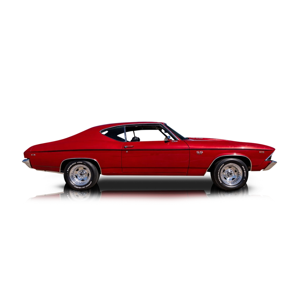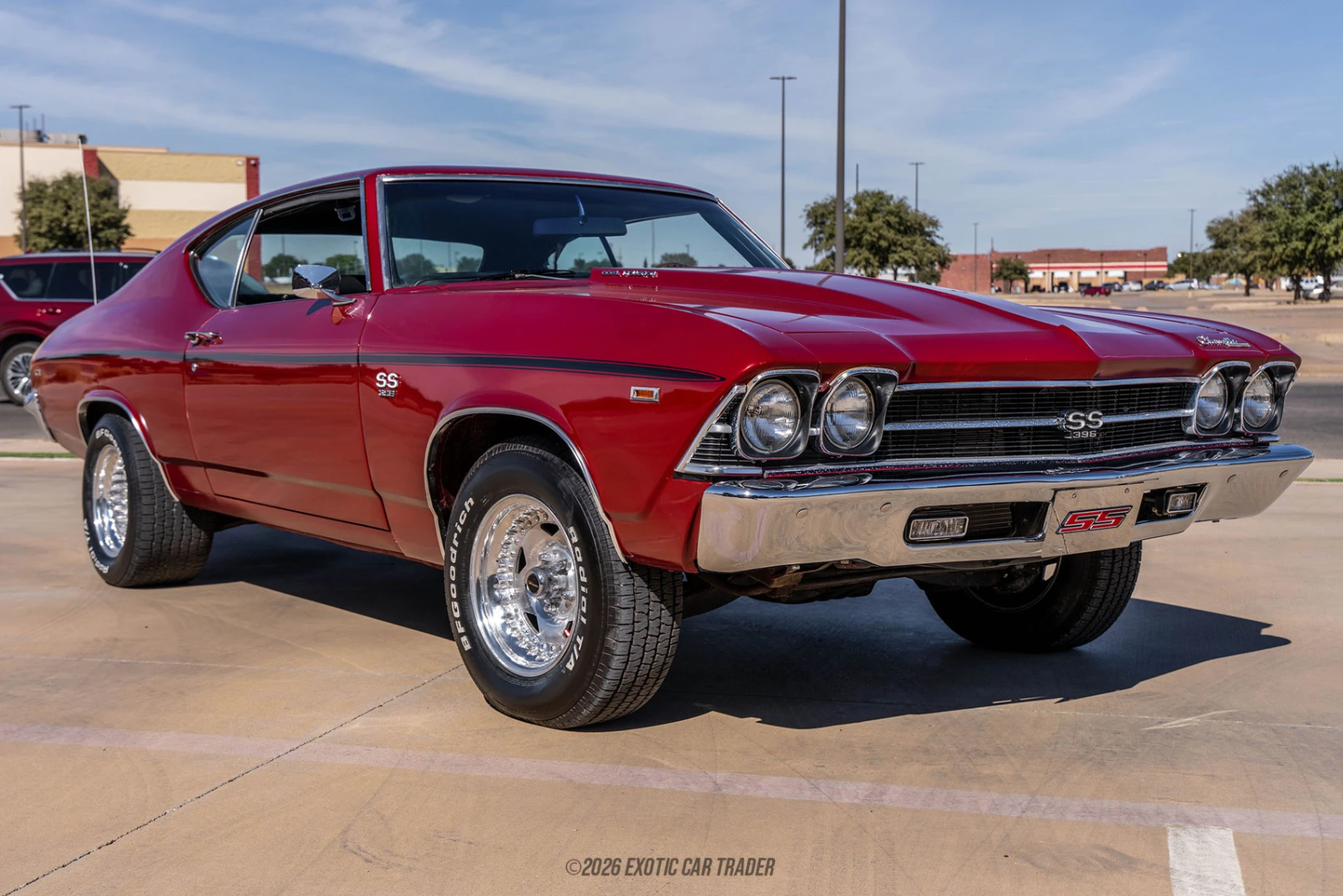 Dressed in Garnet Red, this 1969 Chevrolet Chevelle Malibu is of the two-door coupe variant. Its stylish chrome bumpers are beautifully backed up by equally shiny chrome aftermarket wheels, while the SS badging tells onlookers that this is the hallowed Super Sport variant. White-lettered BF Goodrich Radial T/A tires further add to the muscle car vibe, as does the relatively tall ride height, slightly hunkered-down rear, and dual headlamps up front. Meanwhile, the hood bulge announces the fact that the car comes with the performance-enhancing cowl induction system. The interior of this 1969 Chevrolet Chevelle Malibu comes in black with vinyl-covered seating for four adults. It’s the perfect symbol of the Sixties, with its wood-rimmed steering wheel, low-back seating and analog gauges. There are some white-faced aftermarket gauges added, and a Pioneer head unit has been fitted, giving you WMA and MP3 CD playback capabilities, plus an AUX and USB input. You’ve also got some decent cargo space in the trunk, so you can organize a cross-country trip and take this beautiful V8 cruiser into the great unknown.